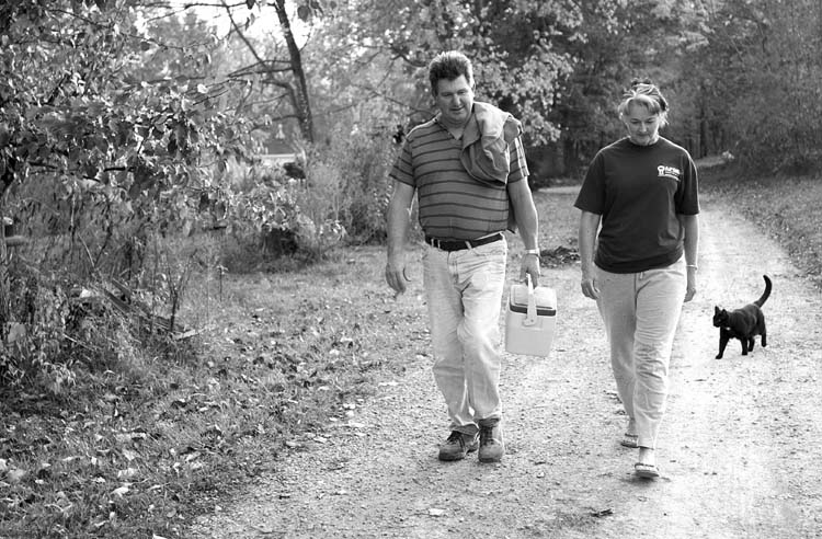 John Duncan and his wife, Sara Duncan of Boston, Ky. started Duncan's Rabbit Ranch a year ago in hopes of becoming financially independent. The couple have been married for seven years.To wind down the evening, Sara Duncan of Duncan's Rabbit Ranch in Boston, Ky., and her husband John recap their days. John works long days to supplement their rabbit business.