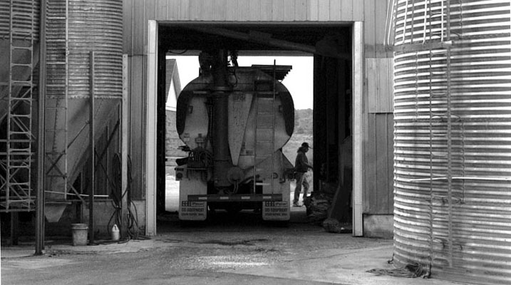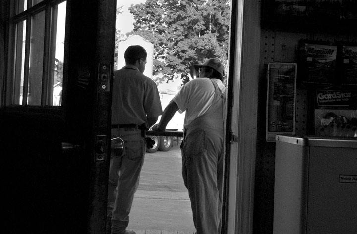 William 'Streak' Strager, owner and operator of the Hiseville Feed and Supply Co., chats on the porch of his office with his longtime friend and customer James Dale London.A truck at the Hiseville Feed and Supply Co. is filled with nutritionally balanced corn and other grains before being delivered to a local farmer to be used to feed his livestock.Justin Bailey quickly moves feed sacks at the Hiseville Feed and Supply Co. during the height of the busy October corn milling season.