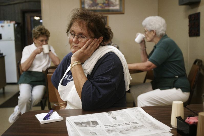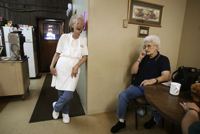 Unfortunately there is no info with this photo.Country Kitchen cook Betty Jean Tucker clings to Harry Wiser, retired Lebanon farmer, during one of his morning visits, "This here's my adopted daddy," said Tucker. Photo by Cydney ScottA cigar box sits virtually empty while a lollipop holder does the same at Country Kitchen restaurant. "We seldom sell them," said Dorothy F. Mattingly of the suckers, "We usually just give them away to the little ones." she says, adding that the pink ones are her grandson, Adam's favorite. Photo by Cydney ScottUnfortunately there is no info with this photo.Unfortunately there is no info with this photo.Unfortunately there is no info with this photo.Patsy Smothers steps out onto Main Street for a quick break. Born and raised in Lebanon, Smothers has worked at the restaurant for the past 16 years, "There's no place like Kentucky," she said of her home, "It's the nicest place in the whole United States."