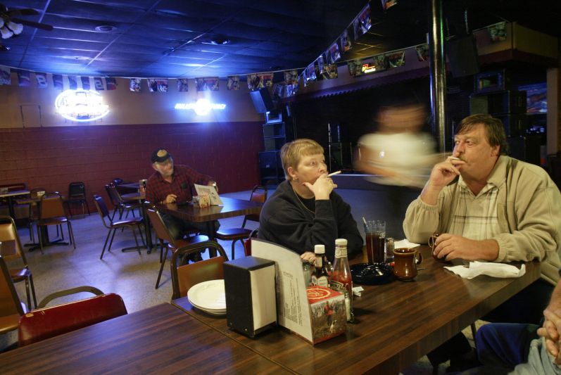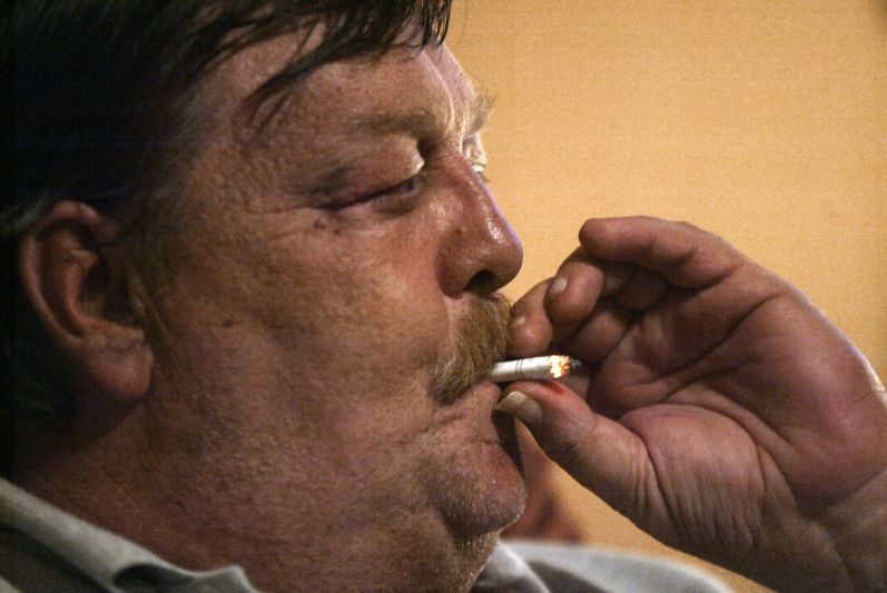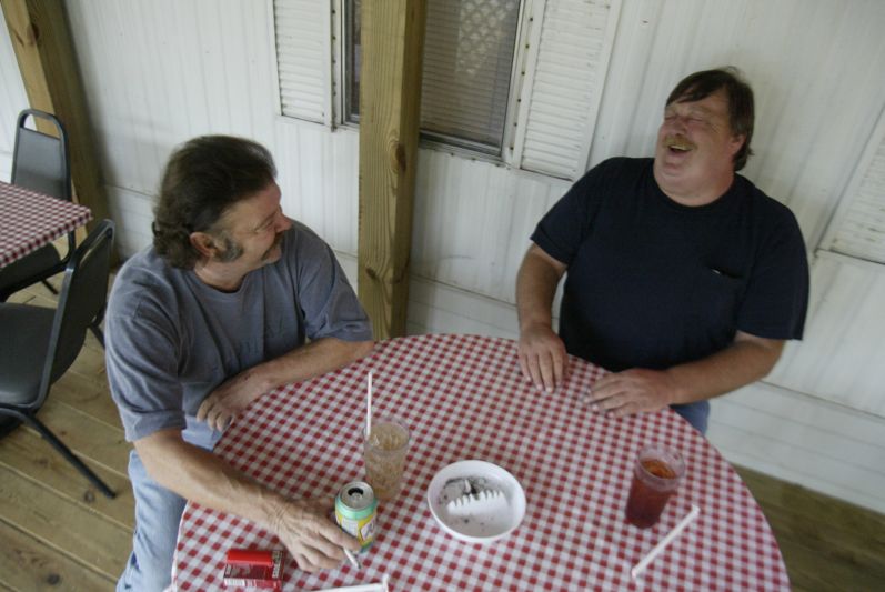 Johnnie Wiser looks over photographs of his grandchildren Thursday at his home in Bradfordsville, Ky. Since Wiser quit drinking 15 years ago, he has grown closer to his family. "They're not scared to come to me now," Wiser said. "If they had a problem, it used to be they'd be scared to come to me."Johnnie Wiser jokes with his friend Ron at the Little Bit of Country restaurant in Bradfordsville, Ky., Tuesday. Ron and Johnnie spend almost every afternoon together drinking coffee and smoking cigarettes, either at a local diner or on Ron's front porch in Bradfordsville.Unfortunately there is no info with this photo.Johnnie Wiser of Bradfordsville, Ky., began drinking when he was 12 years old. At the age of 38, he entered Alcoholics Anonymous and has been clean and sober for the past 15 years, which he attributes to his faith in God. "I have a personal relationship with him," Johnnie said. "Instead of reaching for a bottle, I reach for God."Johnnie Wiser, right, and his wife Hazel, whom he met in a restaurant seven years ago, eat breakfast at JR's Restaurant and Lounge Wednesday. Although Johnnie is a recovering alcoholic, he often has breakfast in this restaurant, which has a bar atmosphere and serves alcohol in the evening.
