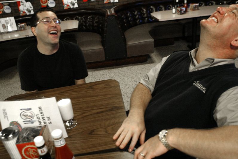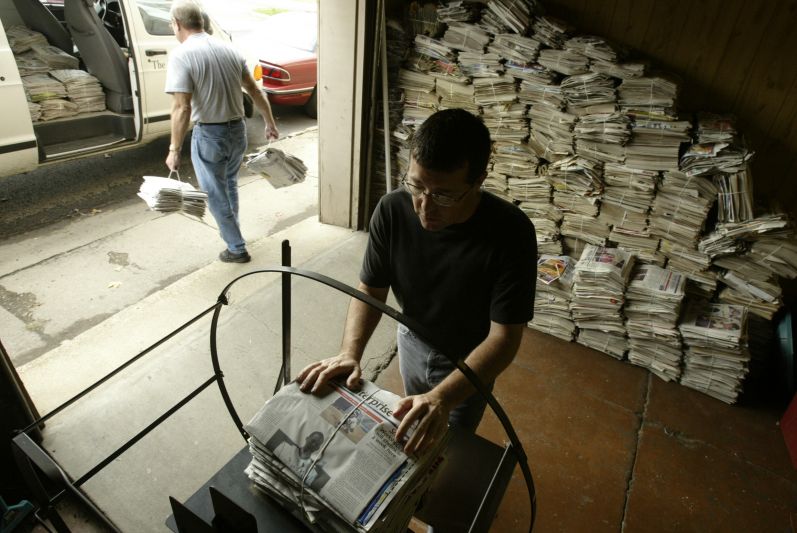 Chris Hamilton, Editor and Manager of the Lebanon Enterprise even smiles at the dentist who is "Dr. Bob" otherwise known Dr. Robert H. Smith during an annual check up. Here he jokes with hygenist Jennifer Ford on how fast her husband drives. While racing around town to cover stories Editor and General Manager Chris Hamilton of The Lebanon Enterprise sees County Judge Dave Hourigan who yells hello and that has a story to tell.Editor and General Manager Chris Hamilton of The Lebanon Enterprise walks down Main Street after covering a story on upcoming election day with County Clerk Eddie Lee at the town hall.Editor and General Manager Chris Hamilton of The Lebanon Enterprise gets background information for an upcoming story on election day from County Clerk Eddie Lee at the town hall.Chris Hamilton and best buddy Charles "Chink" Lancaster met at Little League and have shared a unique bond ever since. As part of tradition because they were born eight days apart, they have lunch annually. This year honored the big 4-0 for both. Editor and General Manager Chris Hamilton of The Lebanon Enterprise dismantles an 100 year old Oak tree which fell to the ground after a wind storm on property that he grew up on as a child and now raises his own family on. He and his family were said to see this tree all but Chris "like an Indian"plans to recycle every part of it in it's honor.J.E. Settles fills a van load of old The Lebanon Enterprise newspapers that are taken to the All-Weather Insulation Company to be recycled into insulation and other special materials used for mining. Editor and General Manager Chris Hamilton ties more bundles to add to the pile.Editor and General Manager Chris Hamilton of The Lebanon Enterprise comes home after work and greets his nine year old daughter Mary Helen who is known as the "prodigy". Mary Helen teaches classes at the local dance school in town and is going to begin taking several 6th grade level classes because she is so bright. Chris takes Mary Helen to school each morning where they hold hands and give each other kisses "and change" (more kisses) before she heads out.