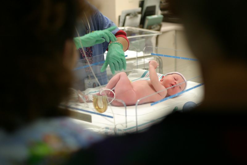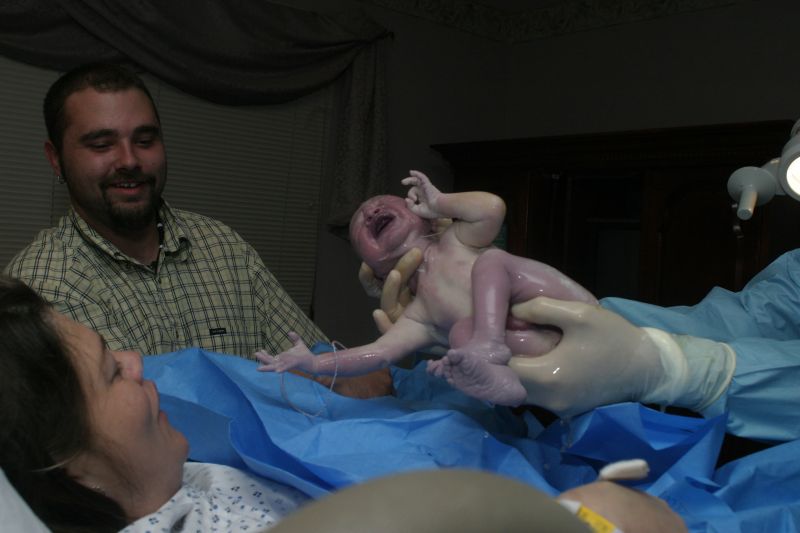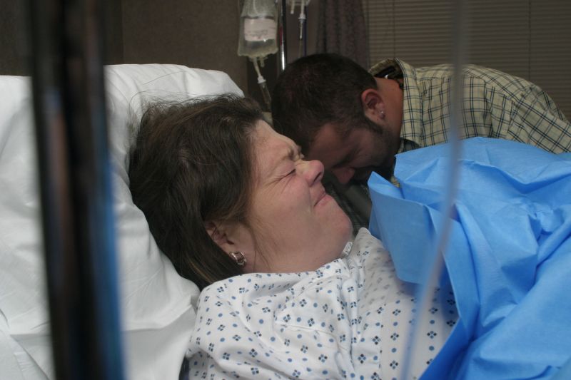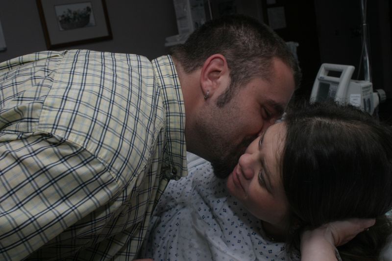 Dr. Lynvall Reynolds hands Stephanie Jackson a 6 pound, 11 ounce baby boy. Jackson was pregnant for 41 weeks and was in labor for over 27 hours.Anticipating the fast-approaching birth at Norton Springview Hospital in Lebanon, Ky., Chad Kaiser gives his girlfriend, Stephanie Jackson a kiss of support amidst her struggling with contractions.EDT by RMC