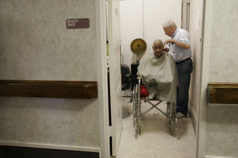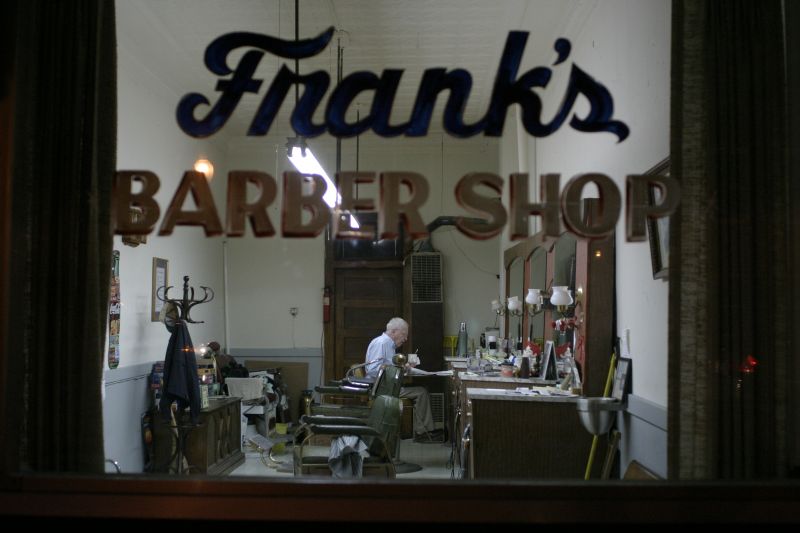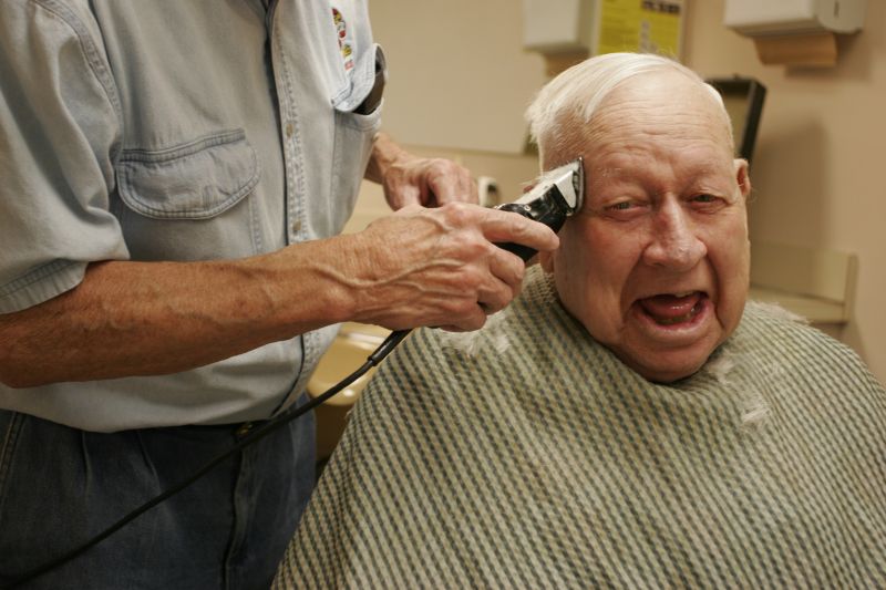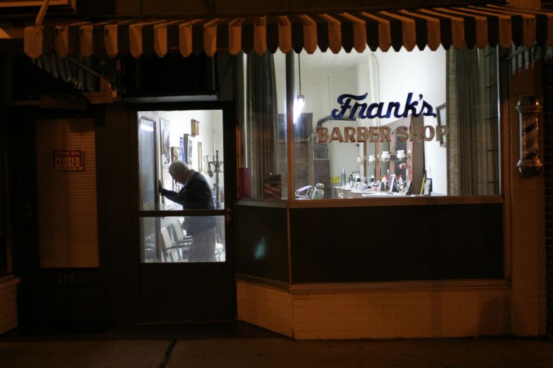Frank "Frank Pot" Abell, 76, starts his days with breakfast in the barbershop he has operated at 115 West Main Street for 25 years. Abell, who has been a barber on Main Street for 51 years, opens four days a week at 7:30 a.m., sometimes hours before the first customer is set to arrive. He occupies himself by sipping coffee and reading the comics section of the local newspaper.Frank Abell gives Zach Trailor, 5, a haircut at Frank's Barber Shop in Lebanon. "I just love to cut little kids hair," Abell Says. "Turn him around and he grins, and you know he's happy whether the rest of them are or not." William E. "Shooter" Mattingly and Howard "Cotton" Abell (no close relation to Frank) catch up at Frank's Barbershop Tuesday morning. The men stop in almost every morning to read the paper and chat with barber Frank Abell and anyone else who might stop in. Frank Abell once offered to return a favor Cotton had done for him by giving the man a free hair cut. "Hell no," Cotton Abell joked, "When I pay for 'em they look bad enough."Frank Abell gives Frank Starks a haircut at Cedars of Lebanon nursing home. Abell spends Thursday mornings going to local nursing homes to give haircuts to the residents there. James Foster Lawson, 90, gets a good laugh while getting a haircut from his longtime barber Frank Abell at the Spring View Hospital Nursing Home in Lebanon. Lawson had just moved to the nursing home the previous week. "I know he don't want to be out there," Abell said, "but that's the way it is." Abell goes by both nursing homes in town every Thursday to give haircuts to the residents there. Abell works on a book of jumble word puzzles when business is slow. He has completed 489 puzzles in a book of 511. Abell is often alone in the store, but he says he will continue to keep regular hours as long as he is physically able. "I'm happier coming down here than sitting at home talking to myself or watching T.V.,'' Abell said. ''I'm not much on T.V.''Frank Abell, 76, gets to work every day ot 7:30 and closes up around 4:30. "I think it's good to keep regular hours," Abell says, "To go to bed near the same time. I think it's good for you as you get older."