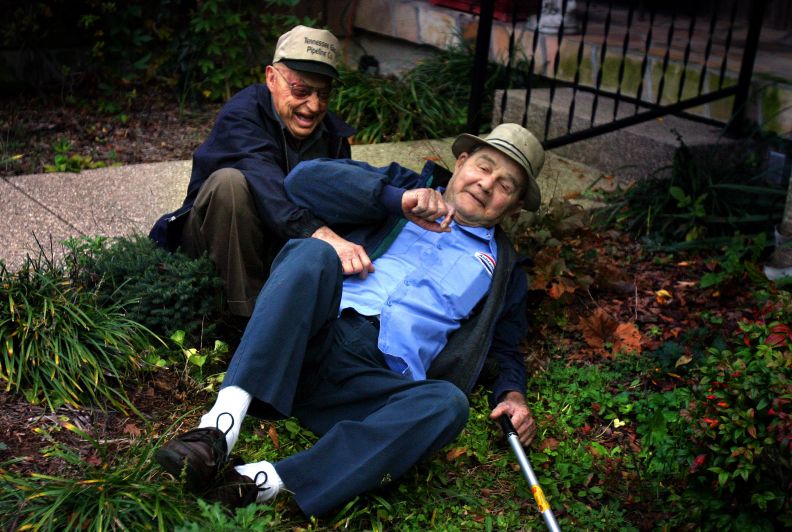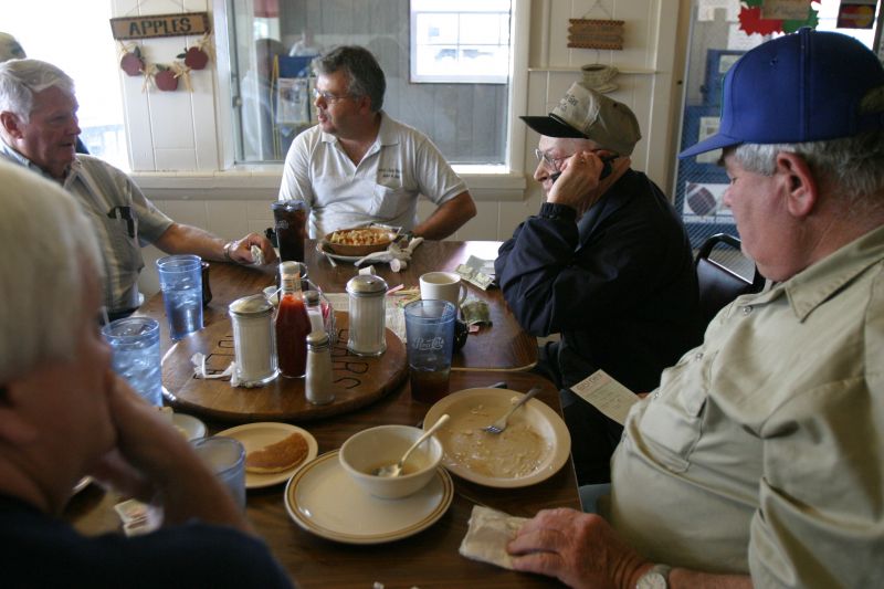 J.T. Whitlock, 80, and Madden Howard, 79, have been friends for over 60 years. They double-dated before each got married. Now, Whitlock picks up Howard every day and brings him to "work" at a garage in town so that Howard will not lie in bed all day. Howard had just fallen off the sidewalk, and Whitlock helped him get up.J.T. Whitlock, 80, visits his friend Madden Howard and his wife Virginia every day in order to get Madden out of bed and to work. While he waits for Madden to get his clothes on, Whitlock visits with Virginia.A favorite restaurant of J.T. Whitlock, 80, is Cedarwood Restaurant. He likes to eat at the Liars' Table with other locals from Lebanon, Ky.J.T. Whitlock, 80, and Madden Howard, 79, have been friends for over 60 years. They double-dated before each got married. Now, Whitlock picks up Howard every day and brings him to "work" at a garage in town so that Howard will not lie in bed all day. Howard had just fallen off the sidewalk, and Whitlock helped him to the car.J.T. Whitlock, 80, manages to go to bed every night at 12:05 a.m. and get up between 6:30 a.m. and 7:30 a.m. He uses an electric razor every day in order to get ready for his many meetings.The lawnmower that J.T. Whitlock, 80, has is at least 25 years old. Whitlock says that he has worn it out three times and rebuilt it so that it still works.Whitlock, 80, had his skin burned in an explosion in Japan during World War II, and he had to have skin grafts. Since he was not able to let the grafts heal correctly, he only has one layer of skin on his hands.