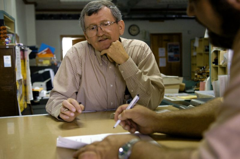 EDT-Lynne WarrenHarry Vanwhy, of Gravel Switch, Ky., drops by the post office to get Postmaster Clellan Hays's signature on a form. Vanwhy's nephew recently helped paint the church where Hays has been pastor for 20 years.