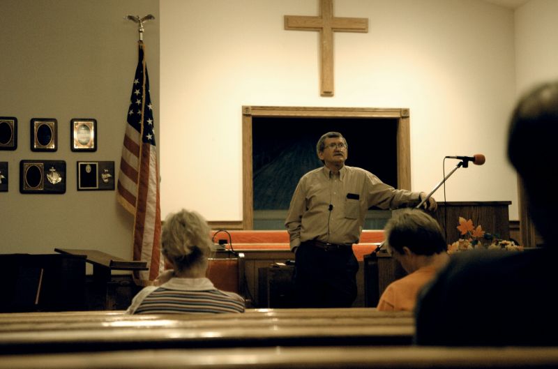 EDT-Lynne WarrenPastor Clellan Hays leads Wednesday night Bible Study at Grace Baptist Church. One church member, Estelle Hubbard, says Hays and his family helped make her life what it is today. Hays "doesn't have to jump around like those other preachers," Hubbard says. "I like him just the way he is."