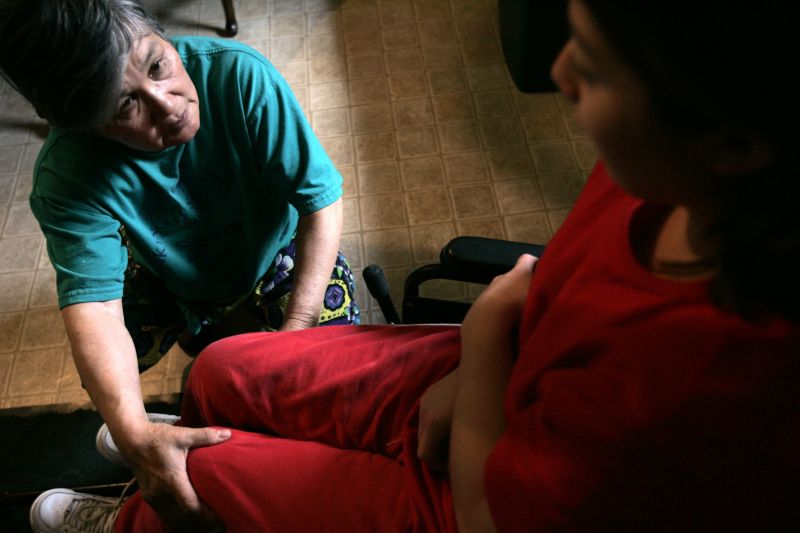 After standing in place for 30 minutes, Fumi Probus massages Maria's legs. She tries to stand for 30 minutes every day to maintain the bone density in her legs, reduce leg spasms and help blood circulation. Maria does this by using "stall bars" that her boyfriend Frankie built for her after seeing one at a rehabilitational hospital.After packing up her belongings to move from her grandmother's house to her new one, Frankie and Maria pause for a quiet moment before going to their home.