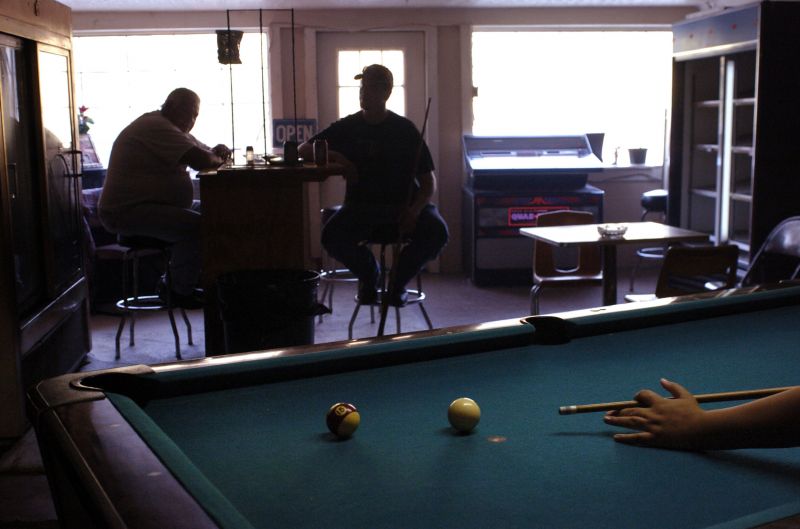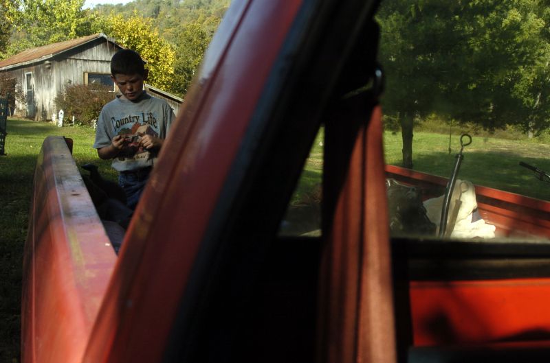 Auston Satterley, 11, looks for a car part in the bed of his dads pickup. Although he's only eleven, Satterley helps his dad fix cars and change the transmission.Larry Ray Pinwell (middle) ,24, chats with store owner Bill Walten, 65 at a local pool hall.Tara Briscoe, 7, and Marcus Beasley, 8, play in the street in front of their homes one October afternoon.Settled on the edge of the Kentucky River, the community of Tyrone is very tight-knit, surviiving floods season after season. Erica Statton, 22, plays with her children Makayla, 2, and Dalton,4. "Tyrone is a friendly environment. The kids can just run around," Statton said. "It's all about family." Bill Walten, 65, has lived his entire life in Tyrone. Despite hard times like the death of his wife and later his granddaughter Stephanie, Walten claims he wouldn't want to live anywhere else. "This is my home, I've seen it change," Walten said. "One thing that won't change (is) the idea of family."