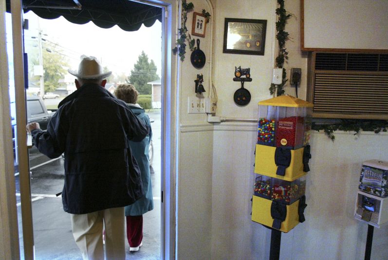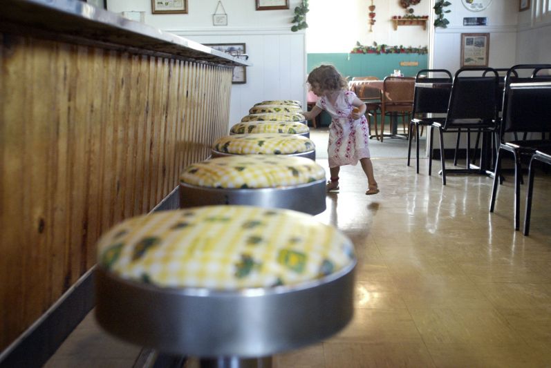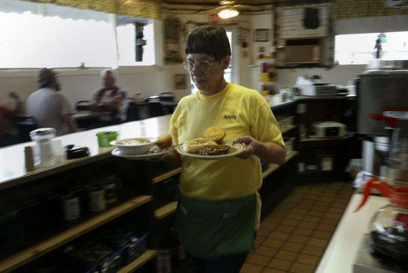 Waitress Ann Oliver gets ready to open the The Farmer's Wife for the second to last time. The restaurant, which has existed in one form or another for 50 years, was closing its doors because the owner, Janet Sue Spencer, had fallen ill. Waitress Ann Oliver has worked on and off at The Farmer's Wife location since 1976. "I tell everybody I come with the building," she said.Seven-year-old Christopher Bellman, left, and his nine-year-old brother, Bradley, stopped for lunch at The Farmer's Wife with their grandmother Brenda Bellman on their way back from a visit to Lexington. The boys just moved with their mom and stepdad to Lawrenceburg, but spent part of their fall break with their grandmother.David Watts, a regular at The Farmer's Wife diner, loves to give waitress Ann Oliver a hard time. "Where's that pie?" he said. "Why don't you get up and get me that piece of pie?" "He's about to get a piece of pie -- in his face," Oliver said.Three-year-old Serena Bruneax can't resist taking a few stools for a spin during lunch. Her home is just a few blocks from the Farmer's Wife diner.Glenn and Mary Lee Birdwhistell leave The Farmer's Wife for what may be the last time. The restaurant, which has been an important part of their morning ritual, was closing because the owner, Janet Sue Spencer, had fallen ill.Tammy Moore, sister of Janet Sue Spencer, The Farmer's Wife owner, rubs her eyes in exasperation. Regular customer Walter Cunningham was giving waitress Brittany McDonald a good-natured hard time.
