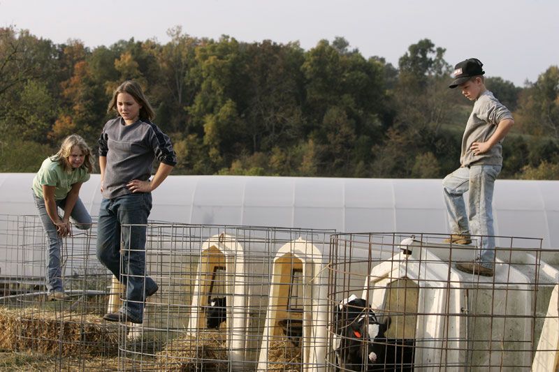 Russell Walker, 45, has lived and worked on the family farm in Lawrenceburg, Ky all his life. Walker generally works 12 to 14 hour days seven days a week. "Farming is a lifestyle, not a job. There's a certain freedom in farming, but you've got to like it because the money's never been adequate," Walker said.Clint Walker works on and learns a little more about the family farm everyday. One day his father, Russell, hopes that his children can carry on the family's tradition of farming.Russell Walker, 45, feeds one of his calves on the farm he shares with two of his brothers and his father in Lawrenceburg, Ky. Russell's son, clint, 10, looks on and learns from his dad while on fall break from school. "Some of 'em feed easier than others," Russell said.Russell Walker, 45, local lifelong farmer in Lawrenceburg, Ky, focuses his energy on making sure the family farm runs smooth and efficient. He checks the equipment regularly to stay ahead of potential problems. "On the farm there's something everyday that comes up," Walker said.Audra Walker, 12, helps her family with work on the family farm. Walker is currently on Fall Break from school allowing her the free time necessary to help out. When asked what career she envisions for her future, she replies simply, "I want to be a veternarian."Rachael Walker, 11, left, and her cousin Audra Walker, 12, help their parents feed calves on the family farm. Rachael's brother Clint, 10, right, also helps with the chores. The three are on Fall Break from school and are able to give their time without the conflict of classes or homework.Russell kisses his son, Ethan, 3. Ethan helps on his dad's farm sometimes. "I don't bring him out here very often because it's hard to watch him," Russell said.