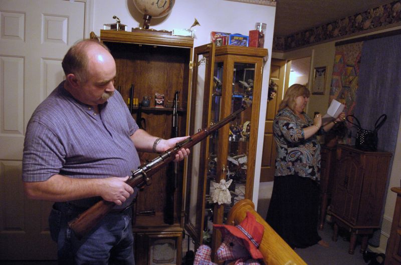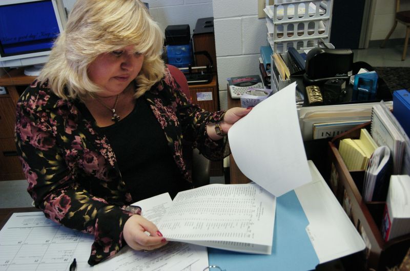Anderson County Jailer Joani Clark, right, watches as Donnie Spauilding, center comforts Carolyn Crawford at the Anderson County Sheriff's Department. Crawford was upset that her son was facing charges for assault and burglary.Dressed in her normal work attire Anderson County Jailer Joani Clark fields phone calls and checks paperwork in preparation for her weekly court day. While she has a uniform, she often wears dress clothes because it helps her interact with people on a personal level even when they are in jail. Lawrenceburg City Police Sergeant Stephen Clark examines a knife from his collection of weapons. The knife was from when he was in the U.S. Marines. Stephen and his wife Joani are both part of the judicial system in Anderson County. He works for the city and county law enforcement and she is the elected jailer of Anderson County.They met when she started working for the county and have been married since 1993.Lawrenceburg City Police Sergeant Stephen Clark examines his gun collection. Stephen and his wife Joani are both part of the judicial system in Anderson County. He works for the city and county law enforcement and she is the elected jailer of Anderson County.They met when she started working for the county and have been married since 1993.Equine insurance adjuster Mary Morris takes a smoke break outside her Main Street office in Lawrenceburg. Checking on insurance claims on horses, llamas, alpacas and more, she enjoys what she does. "We just verify that it was injured or died because of natural or illness and not because someone assisted," she said. Morris has been working as an adjuster for nine years and says she would not do anything else. "I love it. Nothing's ever the same two days in a row."