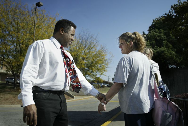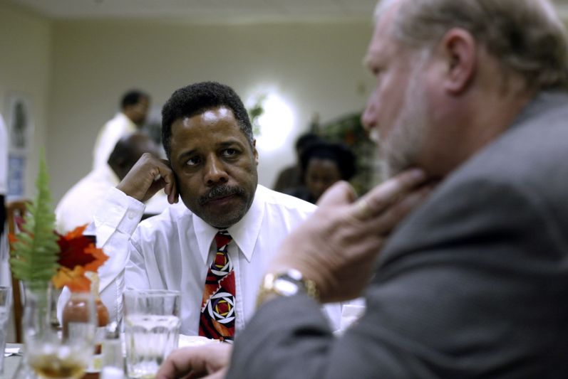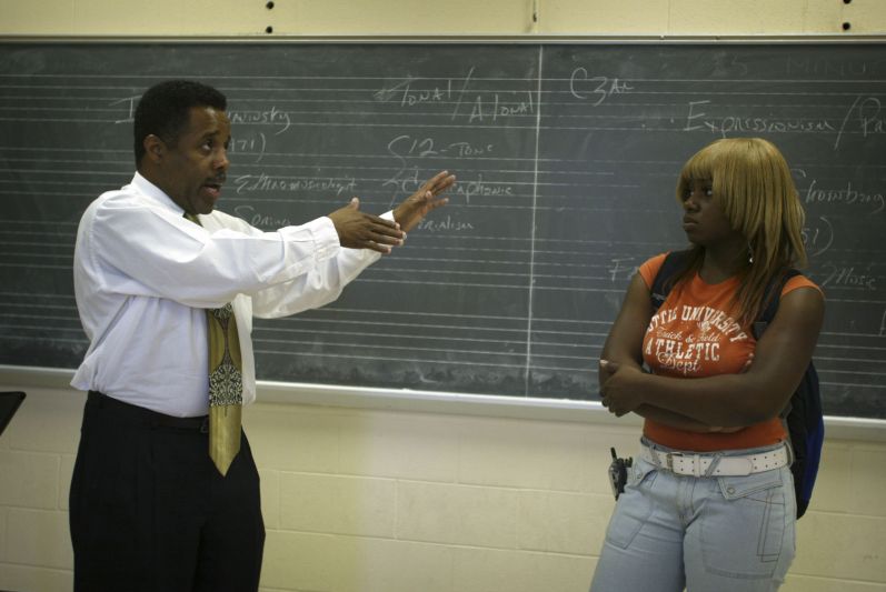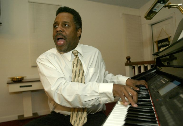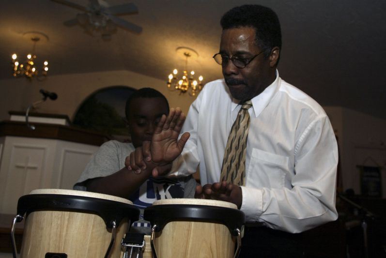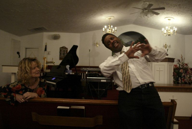 Unfortunately there is no info with this photo.Barry Johnson, an associate professor of music at Kentucky State University in Frankfort, hassles Amanda Trent, a nursing student, about smoking a cigarette between classes. Johnson says he is always asking himself: "How do I make their lives better?"Barry Johnson, an associate professor of music at Kentucky State University in Frankfort, talks with George Shields, a philosophy professor, in the faculty lunch room about the best way to teach religion in schools. Church pianist Teresa Goins listens to Pastor Barry Johnson talk about his plans to create jobs for Evergreen Baptist Church members by creating community learning centers on property the church has bought. Barry Johnson, who teaches music at Kentucky State University in Frankfort, talks after class with student Sade Williams, 19, who asked how long it takes to learn to play the piano. Pastor Barry Johnson, a former nightclub musician, leads the Thursday evening men's choir rehearsal at Evergreen Baptist Church. Barry has been a musician since the third grade, when he first picked up a clarinet.