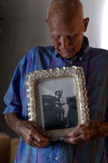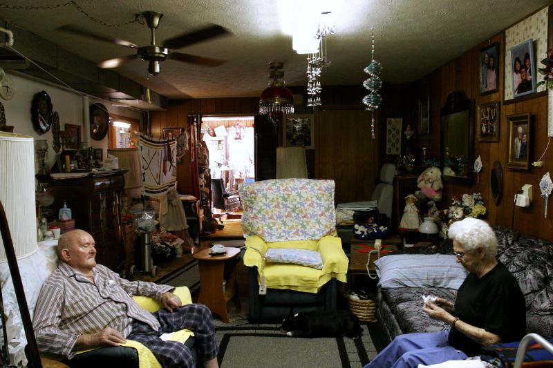 Mary Onita Corn, 84, wakes her husband, Wesley, with a soft touch. The couple of 67 years grew up down the creek from each other and married when Mary was 16. "I wouldn't trade her for a railroad share," said Wesley, 92.Wesley and Mary Onita Corn sit across from each other while visting the two spend a lot of time in their home together in Golden Acres Trailor Court Co., which they started in 1970. Altough they still run the business, much of the work is done by thier daughter Emma Denton. Wesley Corn, 92, of Lawrenceburg, Ky., lives with his wife of 67 years, Mary Onita Corn, 84. Their daughter, Emma Denton, also lives with the couple to help her mother care for Corn who has been down for three years due to heart problems.
