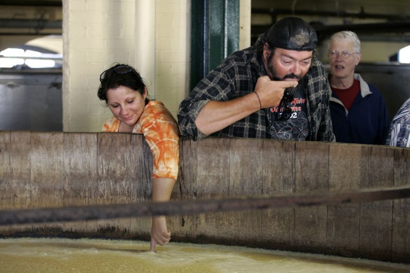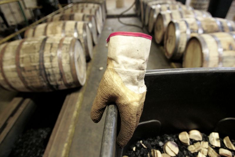 Unfortunately there is no info with this photo.Donna Rucker, left, and Gary Parker, both of Berea, taste a batch of beer fermenting at Four Roses Distillery during a tour. Troy Robinson waits as a sample of beer is spun in a centrifuge at Four Roses Distillery. The samples are bottled for further taste testing.Gary Parker, of Berea, tastes a sample of Four Roses Single Barrel Bourbon after a tour at Four Roses Distillery.A worker's glove rests on a trashcan while employees take a break at Cox's Creek Warehouses. The employees dump aged bourbon in preparation for bottling the Four Roses Kentucky Bourbon.