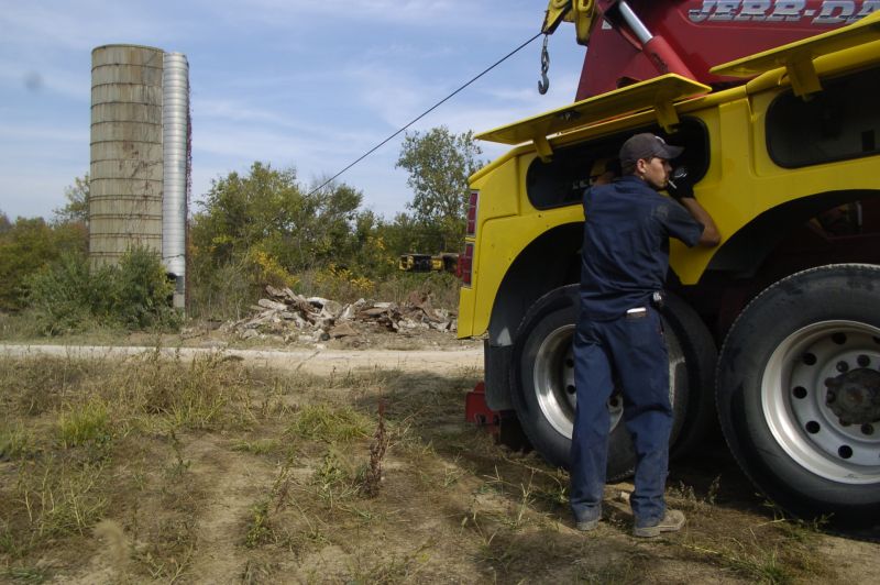 David Carey, 22, who works for Carey's Towing and Recovery, operates the heavy duty recovery tow truck at a construction site where an old milk dairy was being demolished in order to move a road to the other side of a property line.David Carey, 22, a vehicle recovery and excavation operator for Carey's Towing and Recovering, nearly slips while walking down a steep slop of topsoil. The dirt is sold by the truckload.David Carey, 22, from Lawrenceburg, Ky., holds his nine week old German Shepard Hidie, who got her name because when she is at the David's house always hides under the bed.David Carey, 22, from Lawrenceburg, Ky., is a vehicle recovery and excavation operator for Carey's Towing and Recovery. Here his nine week old German Shepard Hidie is called to her attention to keep her from the truck traffic in the garage parking lot on Friday morning October 21, 2005.Tow truck operator David Carey, 22, and girlfriend Lanessa Caldwell, 24, both of Lawrenceburg, say goodbye before Carey leaves to go tow a construction vehicle near Elizabethtown.David Carey, 22, a vehicle recovery and excavation operator for Carey's Towing and Recovering in Lawrenceburg, talks on the phone.