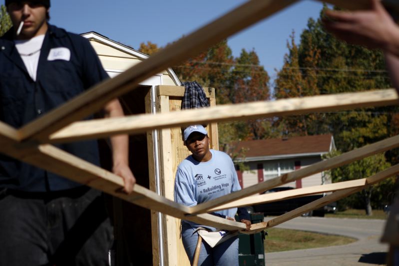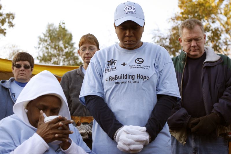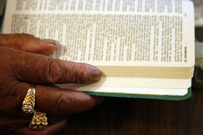 Before service every Sunday Frank Stafford reads his bible.Frank Stafford has been the pastor of Lively Stone Church of God since 1982. "I love serving the people and I love serving the Lord," Stafford said.(left) Randy Casteel and (right) Melanie Davie along with three other people carry a roof truss over to her house.Melanie Davie watches as the second wall of her house is raised. Volunteers, (left) CJ Moore and (right) Gorge Soria help level out the wall.Before beginning work Saturday, October 21 all of the volunteers pray over the work and the four houses that were being built. Melanie Davie and her mother, Viola Boyd were on site all day Saturday to help build their house. Davie and Boyd are required to work 400 hours on building their home. If the recruite volunteers those hours add to theirJust after 7 o'clock the sun rises over the treeline in the Madisonville City Park on Saturday.Frank Stafford worships during the Sunday service at Lively Stone Church of God while his daughter, (left) Sherri Wilson leads the church in song.Some people joke that Frank Stafford is the best dressed mayor in Kentucky.