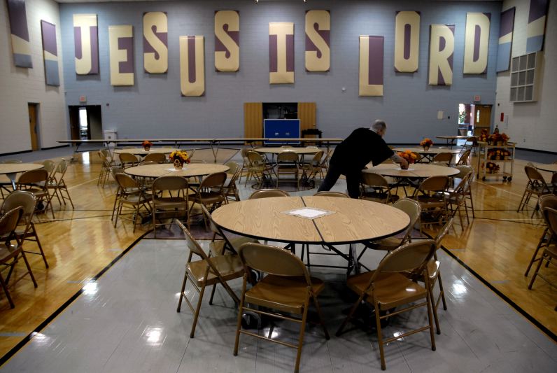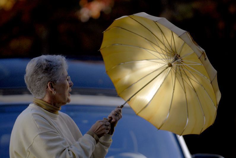 Carol Niswonger sets up tables for a public meal at Madisonville's First United Methodist Church.Carol Niswonger spent 31 years as a school teacher before retiring in 2002. "I've been a teacher my whole life. I can't get over it." She works part-time at the Adolescent Day Treatment Center in Madisonville, a school for students with disciplinary problems. Niswonger oversees the computer lab where students use on-line learning programs.Carol Niswonger, left, and J. E. Barlow attend a training seminar on on-line learning and student evaluation tools at the Hopkins County Board of Education. Niswonger works part-time at, and Barlow is the principal of, the Adolescent Day Treatment Center in Madisonville, a school for students with a history of discliplinary problems.After acquiring several new items at an auction, Carol Niswonger, 58, adds them to the burgeoning collection in her garage. Niswonger makes crafts from items purchased at auctions and sells them at her stall at Main Street Antiques.Carol Niswonger examines an umbrella she purchased at an auction. She plans to use it next time she is asked to impersonate Dolly Madison, wife of Madisonville's namesake and U.S. President James Madison. Niswonger has appeared as Dolly Madison in parades and ceremonies around town.Carol Niswonger, 58, tends to the flowers in front of First United Methodist Church in Madisonville. "I want it to be nice for Sunday", she says.Carol Niswonger looks on as a police car speeds by in front of her house.Carol Niswonger, foreground, visits her mother, 79 year-old Rose Anna Niswonger, nearly every day since Rose Anna began suffering from chronic pain, limiting her mobility.Carol Niswonger drives to the Madisonville YMCA in the late afternoon.Carol Niswonger tours the abandoned upper floor of the Hopkins County Board of Education building, which she attended as a student in seventh and eighth grade, when the building was the site of Seminary Junior High School.