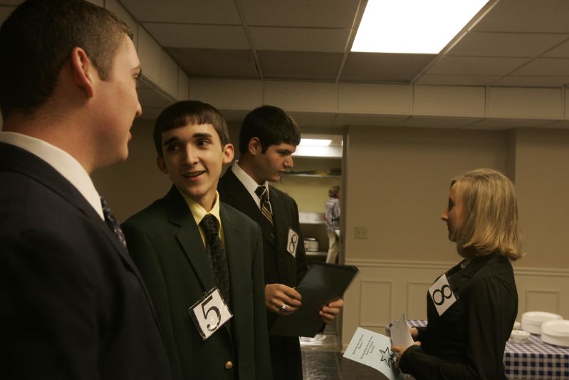Josh Pruitt leans on a gate and watches his pet sheep, Legs, graze outside his pen behind the family home. Normally Pruitt sells the sheep he shows at the end of the year, but " Legs was on my Christmas list" so he stayed at the Pruitt home as a family pet. Josh Pruitt, second from left, socializes with fellow Kentucky Farm Bureau Outstanding Youth participant Alex Pogue, while Leigha Phelps and Cody Brown talk before delivering their speeches.