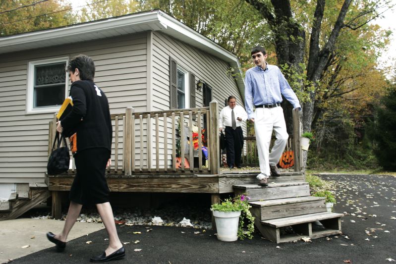 Josh Pruitt, a 17 year old senior at Madisonville North Hopkins High School, is president of Kentucky 4-H in addition to being active in Future Farmers of America, Kentucky Farm Bureau and the Pennyrile Church of Christ. Josh Pruitt (c) hurries to church with his father, Byron and mother, Brenda, early Sunday morning. Josh participates in a teen bible group and teaches a bible class to 3 and 4 year olds at the Pennyrile Church of Christ in Madisonville. Riding home from a pancake dinner at the Lions Club in Madisonville, Josh gazes out at farm land near his home. Although he participates in many agricultural organizations now, he intends to study pharmacy in college because he realizes it is hard to rely on farming for a living.Cars wait for a freight train to pass on West Center street in downtown Madisonville late Saturday night.The Givens Book Exchange sits darkened on West Center street in Madisonville. A metal gate casts a shadow late Friday night on west Center street. A storefront sits empty late Friday on West Center street late Friday night.