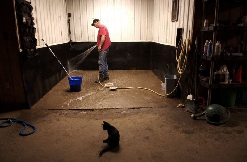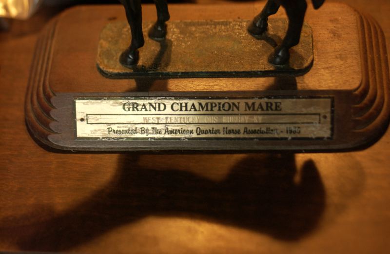 Jeff Staton wraps the leg of "Call me Elusive," one of the mares at his ranch Golden Hollow Farms in Madisonville. Horse trainer and breeder Jeff Staton, exercises his mare "Call me Elusive" in the stables at his ranch Golden Hollow Farms. Year round, Staton spends several hours a day working each horse and making sure they are in good shape for the competitions. "My horses compete for looks, they have to have good knee, a nice coat, and straight legs," Staton said. Horse trainer and breeder, Jeff Staton, cleans the shower area where he washes all of his quarter horse daily at his ranch Golden Hollow Farms. Horse trainer and horse breeder, Jeff Staton, 52, (left) speaks with his brother Rodger Staton (right) about the day inside his stables at his ranch Golden Hollow Farms. 'My entire family is born and raised here in Madisonville, we live just a few miles apart from each other.," Staton said. Horse breeder Jeff Staton has received thousands of awards through the years for various quarter horse competitions. Staton has been training and breeding horses for 30 years. The awards for Jeff means a job well done. "We do a good job here at Golden Hollow Farms and the clients are happy."