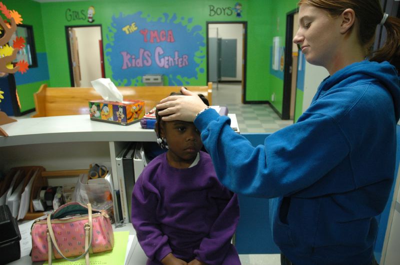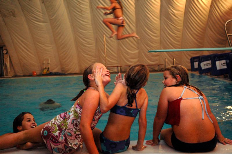 Phil Knight, 19, often spends his time after work playing paintball with his friends, although there hasn't been much group competition of late: "Since I bought a semi-automatic, my friends don't play with us anymore." Phil actually has two semi-automatic paintball guns, so he can lend one to a friend, to level the playing field.Mitch Diamond, 19, spends his first day as a member at the Madisonville YMCA working out in the weight room. Diamond moved from Chicago to work in his grandfather's coal mining business, and after setting himself up in a town that he enthusiastically calls "more relaxed" than his former urban home, he decided to join the Y for a bit of exercise. "Everyone knows the Y," he says, "I mean, it has everything you need."Unfortunately there is no info with this photo.After a friend's birthday party, the girls locker room at the YMCA is full and the swimmers shiver while they wait for their turn to shower.Michala Knight, 7, is not amused as she waits for her friends to clear out of the showers after a swim at the YMCA's pool.As the assistant director at the YMCA Kids Center, Carrie Gamblin, 19, is in charge of first aid. But 4-year-old Palysia Browder wasn't running a temperature so Carrie and the teachers decided it was just a case of "the sleepies." Palysia had just woken up from her afternoon nap.Music plays quietly in the background as Hailyn Gibson, 4, takes a 30-minute nap after a long morning of activities at the YMCA Kids' Center in Madisonville. Hailyn is part of the Butterfly Group, 4- and 5-year-olds who spend the day at the center while their parents are at work.