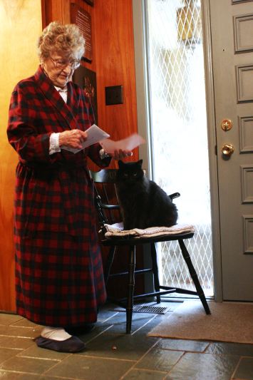 "It's hard to walk everyday, especially when the weather is bad, it's even harder when you haven't done it in a while," Glema said. "I used to have to walk no matter what, to count the cattle, but not anymore."Glema Mahr has been on the board for the Red Cross, Habitat For Humanity and currently she serves on the YMCA Finance Comittee. As part of Madisonville for more than half a century, Glema Mahr and her late husband, Merle, have left a lasting impression on the community. After her husband passed away in 1991, Glema began volunteering at the Madisonville Community College Center for Fine Arts. Eventually, she started donating money in addition to her time in order to see more classical shows come through the center. As a result of a $1.1 million endowment to the Madisonville Community College, the center became the Glema Mahr Center for the Arts. "I was just glad I got to do this while I'm still living," Glema said. An active 89-year-old, she volunteers her time on Thursday afternoons at the center. "This robe was Merle's and I've worn it ever since the winter he died, it's wool so it keeps me warm, I also wear my socks to bed because I don't have anybody to warm my feet on at night anymore," Glema said. Mahr's cats keep her company so she doesn't have an empty house, "I don't know how older people live without a pet," she said. Glema Mahr and the Woman's Book Club meet on Friday afternoons. "I joined this club in 1953, and I just love it," Glema said. The club consists of 12 ladies, they sit down for lunch and then one person each week presents a book of their choice. "I walk by myself everyday, it helps my knees from getting stiff and I stop in this barn to take a rest before I go home, and I always walk with my cane and my cell phone in case something happens," Glema said. Victor Schenk, 38 has been working at Melody Lanes Bowling Alley for over a year, "I like the people that come here, and seeing them hang out and have fun keeps me busy and out of trouble," Schenk said. From left to right Kaci Sanchez, 13, Olivia Holloway, 13 and Ellie Lansden, 13 ordered fries from Schenk after bowling on Friday night.