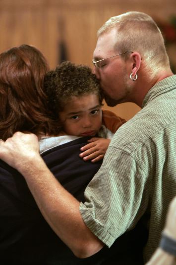 During a Sunday service, David Morelock kisses his son, Edric, 3, with wife, Sarah, at the Nebo Christian Church, in Nebo, KY, Oct. 22, 2006. The church, not the building, dates back to 1838. The small congregation consists mostly of generations of families.Jaime Kerns, 22, dances with John Quarles, 34, at Casa Mexicana, Friday, Oct. 20, 2006. "I come here every other week," Quarles says. There are only two places in town to go out for dancing and drinks. "I go there when I don't come here." The colorful forest of autumn, behind the Ruby Lodge, a bed and breakfast inn, reflects off the Spring Lake water in the evening after sunset, Friday, Oct. 20, 2006. The changing landscape of the lake and surrounding 74-acre forest is home to red fox, deer, geese, beavers, squirrels, birds, blue heron, and owls. "Its kind of like an oasis for wildlife," says Joe Thomas, of the Ruby Lodge.Sonia Escamilla, who is on a business trip from Mexico, enjoys granola with yogurt and strawberries at the Hammock-Moore House, a Victorian inn on Main Street in Madisonville. Shirley Thomas, who owns the B&B, is in the background.