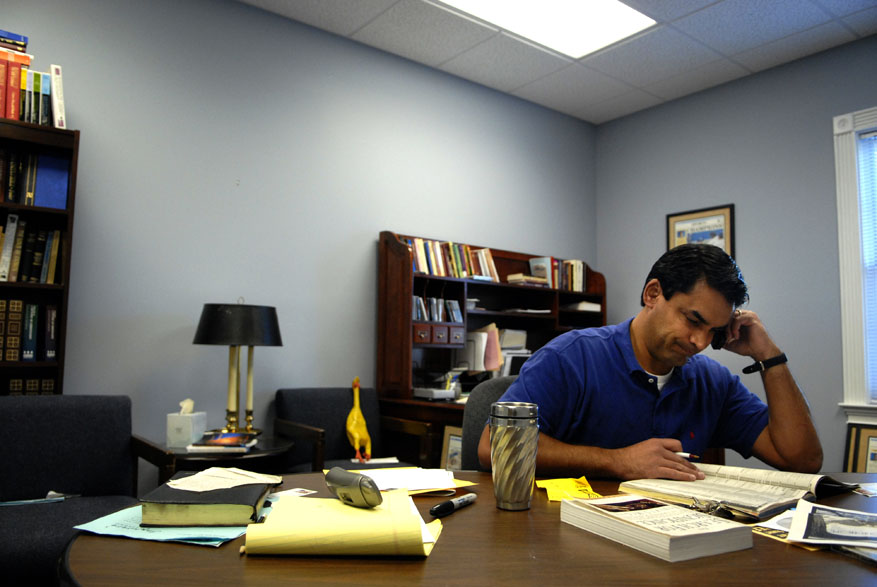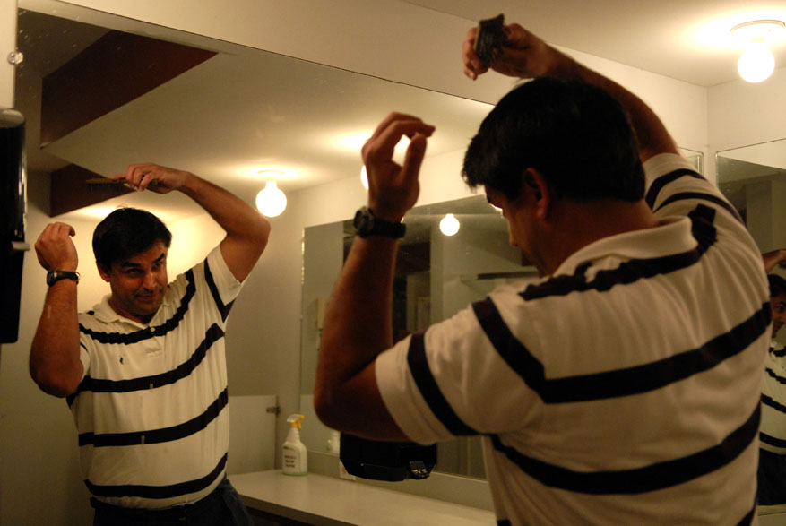 John Estorge puts gel in his hair after working outJohn Estorge works out five times a week to releave the stress from his everyday lifePastor John Estorge and his family help make up the community of Danville, Kentucky.