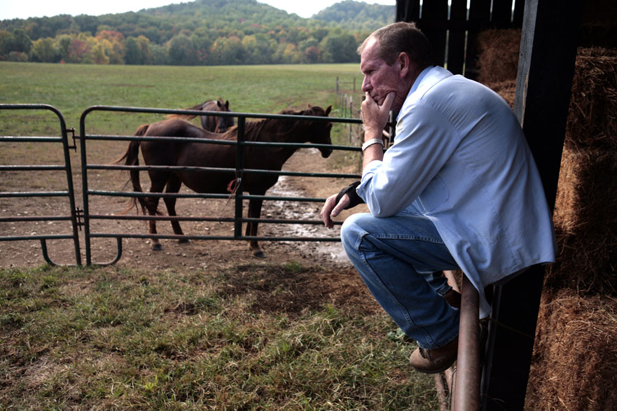 Gary Gorley contemplates his role as the current costodian of land that has been in his family intermittenly for four generations, land on which he was raised. "It's not that I would mind moving, but my heart is just tied to this place." The farm in the Forkland area of Boyle County, was once used for agriculture, primarily producing tobacco. Gorley, now retired, dedicates much of his time to raising Tennessee Walking Horses. SEAN MCGANUnfortunately there is no info with this photo.Buddy Marrick holds one of his quarter horses while she is reshoed in Gary Gorley's barn. The two men trade and breed horses and keep and eye on each other's land. Marrick doen't have a barn, so Gorley lets him use hisBuddy Marrick holds one of his quarter horses while she is reshoed in Gary Gorley's barn. The two men trade and breed horses and keep and eye on each other's land. Marrick doen't have a barn, so Gorley lets him use his.Gary Gorley relaxes after a day's work at the farm. "You know lately I've been feeling really bad. Brenda goes in for surgery on Monday, and is trying to get the house in order before the end of the weekend. She has been moving at 90 miles per hour and I've been going about 35. I really have to help out moreEarly on a fall morning, Gary Gorley changes from his house shoes he wears at home in suburban Danville Kentucky, into the boots he will wear to his farm in the Forklin community of Western Boyle County. Gary Gorley relaxes after a day's work at the farm. "You know lately I've been feeling really bad. Brenda goes in for surgery on Monday, and is trying to get the house in order before the end of the weekend. She has been moving at 90 miles per hour and I've been going about 35. I really have to help out moreGary Gorley visits Elder Cemetery. Four generations of ancestors, both Gorley and Dougherty are buried here. Families who live in the area are allowed to be burried here free of charge. "It usually takes me about 15 minutes to get to the farm, which is just about the time I need to do some thinking. I get a lot of farming done driving down this road" said Gary Gorley, speaking of his daily commute to his farm in the Forklin community of western Boyle County. The farm has been in his family for four generations.