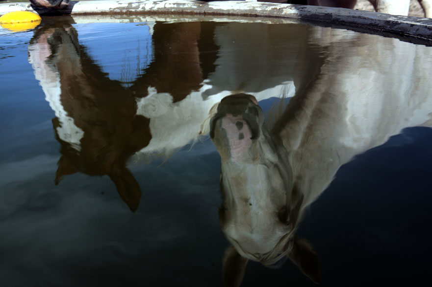 A pair of Gary Gorley's Tennessee walking horses' reflection appears in a drinking trough at Gorley's farm in the Forklin community of Boyle County.Gary Gorley raises Tennessee walking horses.