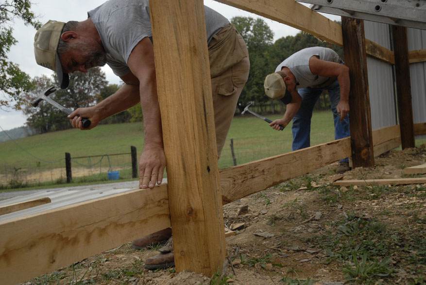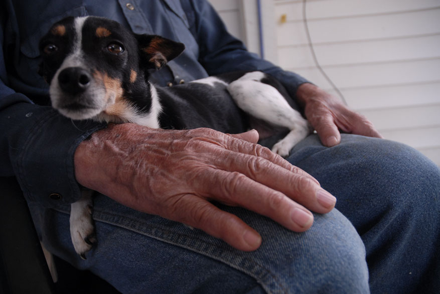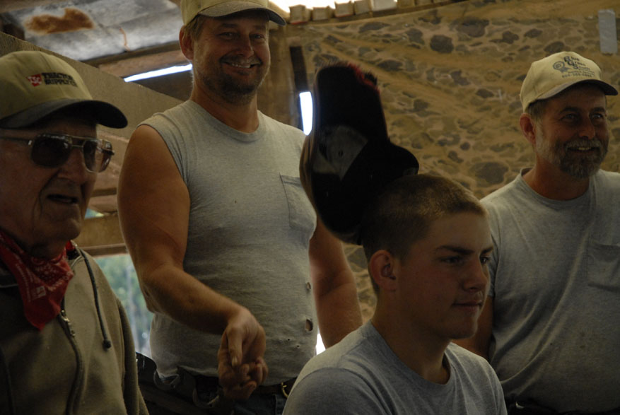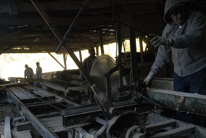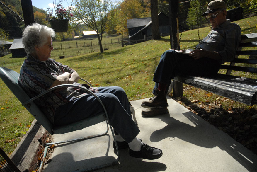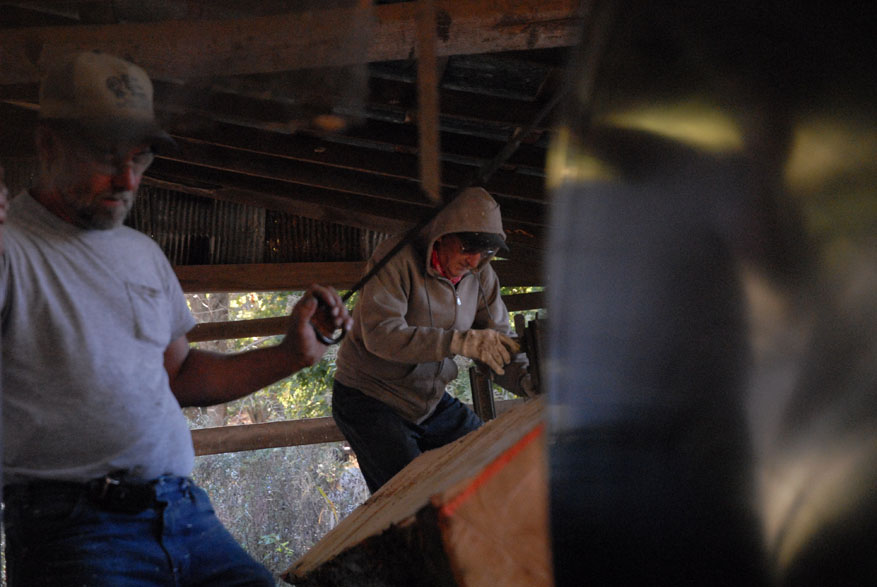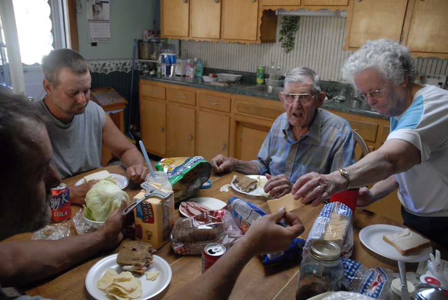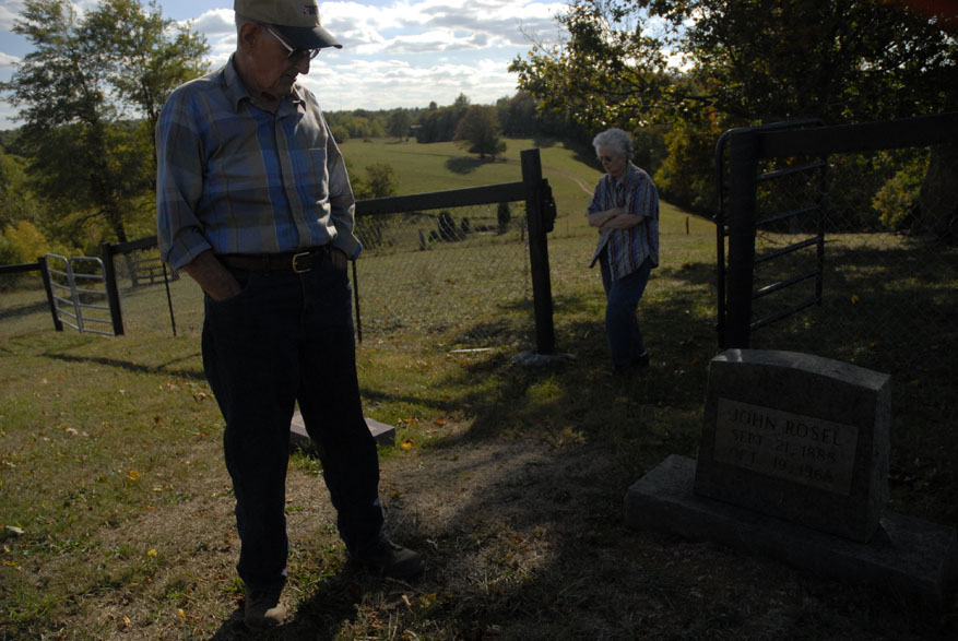 Morris Martin and his wife Dorothy visit the cemenery located on their land where Martin and his wife Dorothy of 38 years have already chosen their curial sites. "Some people leave their trash when they come up here," said Morris Martin while inspecting the grave siteAmy, the family lap dog, makes herself comfortable on her favorite lap. "She come up here to fthe farm house when the grandkids leave and doesn't go home until Sam comes home," said Morris MartinMorris Martin, 80, and his wife Dorothy Martin, 77, of Junction City Ky., relax in the early morning sun. The Knob Farm has been passed down through three Martin generations and together Morris and Dorothy have raised five kids here in Boyle County. Eddy, Sam, Morris and Dorothy Martin share a home cooked lunch together after 8 hours of working at the sawmilllMorris Martin, 80, of Junciton City Ky., tinkers in his garage. "I'm always doing something, keeping busy," said Martin"Sawmilling is just like drinking wiskey, you get started you can hardly get away from it," said Morris Martin, 80, of Junction City Ky., (right) who has owned and worked the family sawmill for 48 years. Morris raised his sons working with him on the sawmill and now his son, Sam Martin (center), teaches his own sons, Cody, 14, and Dutch, 15, (left) the inner workings of the mill.Morris Martin, 80, (left) of Junction Ciity Ky., takes a break with his sons Sam Martin (cemter back) who attempts to steal his nephew Dutch's hat and Eddy Martin (rightMorris Martin, 80, of Junction City Ky., inspects the damage to the saw blade after hitting an insulator within a tree he was cutting into boards. "It's old but we just keep patching and working on it," said Martin"Sawmilling is just like drinking wiskey, you get started you can hardly get away from it," said Morris Martin, 80, of Junction City Ky., (right) who has owned and worked the family sawmill for 48 years. Morris raised his sons working with him on the sawmill and now his son, Eddy Martin (left), teaches his own sons, Cody, 14, and Dutch, 15, (left) the inner workings of the mill.Brothers Sam and Eddy Martin work together on a garage built from wood cut on their family farm and processed at their father's saw mill. Morris Martin has owned the mill in Junction City for 48 years. "We cut a little wood and they build a little, and it all works out," Morris said