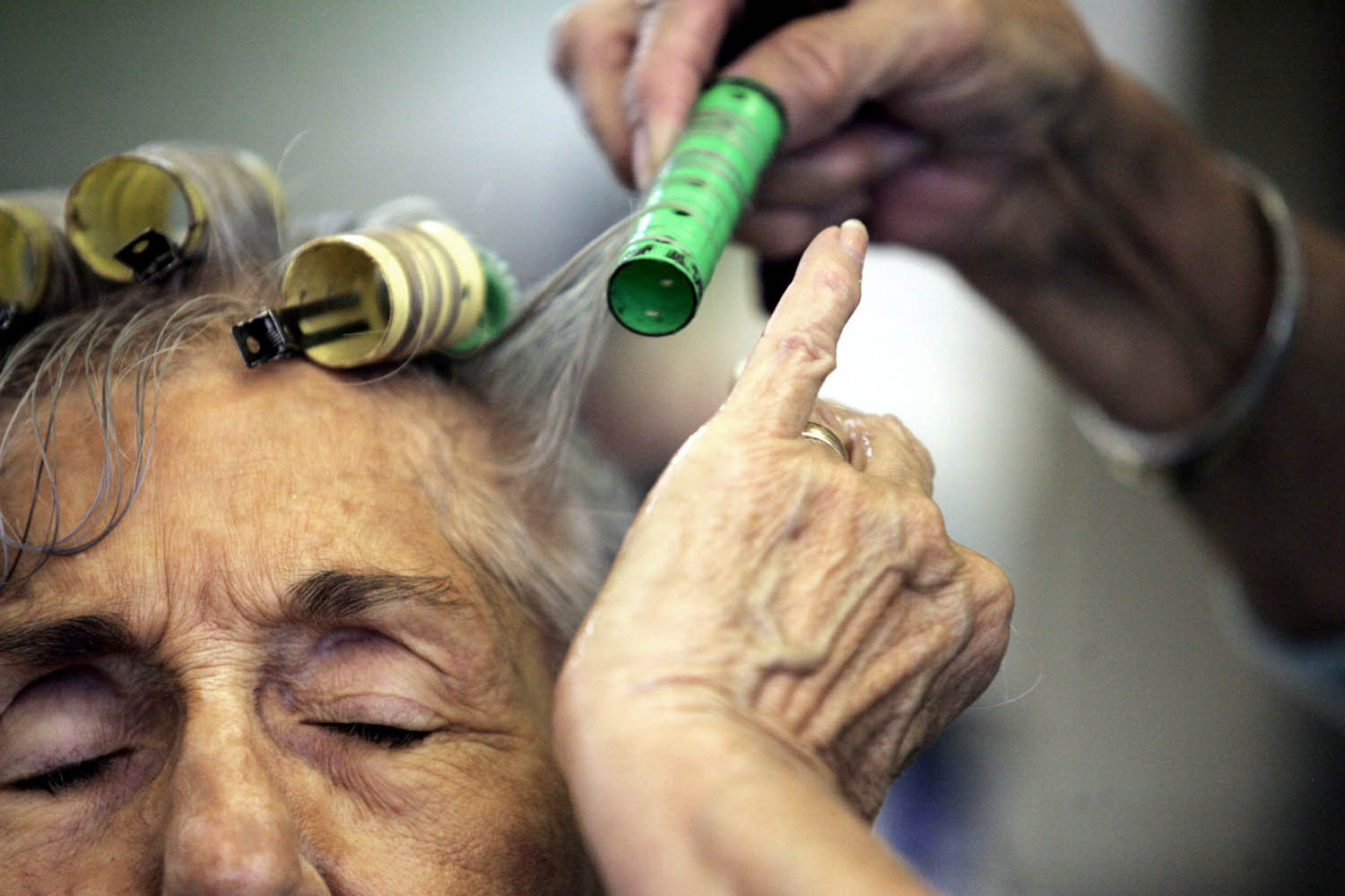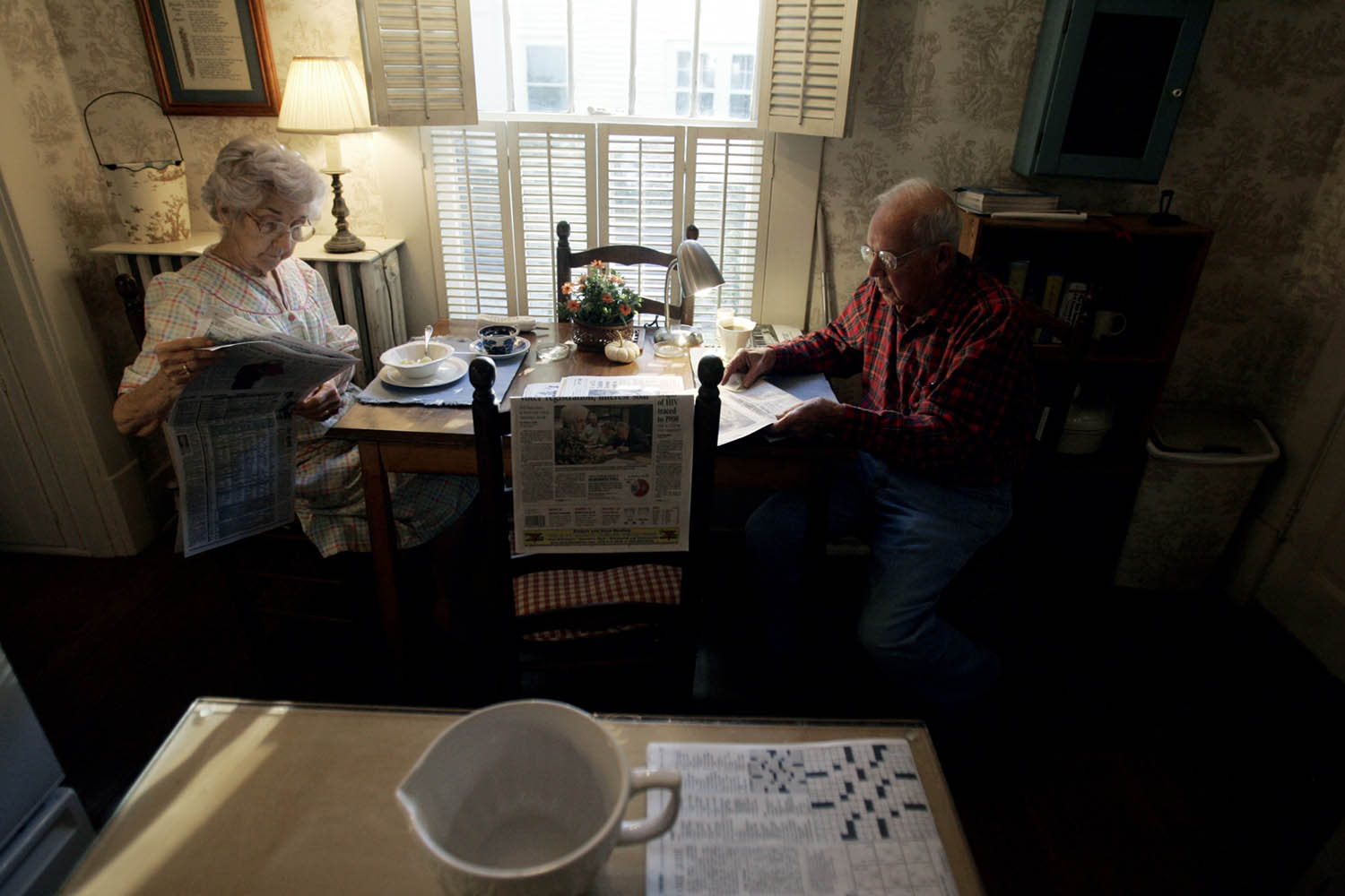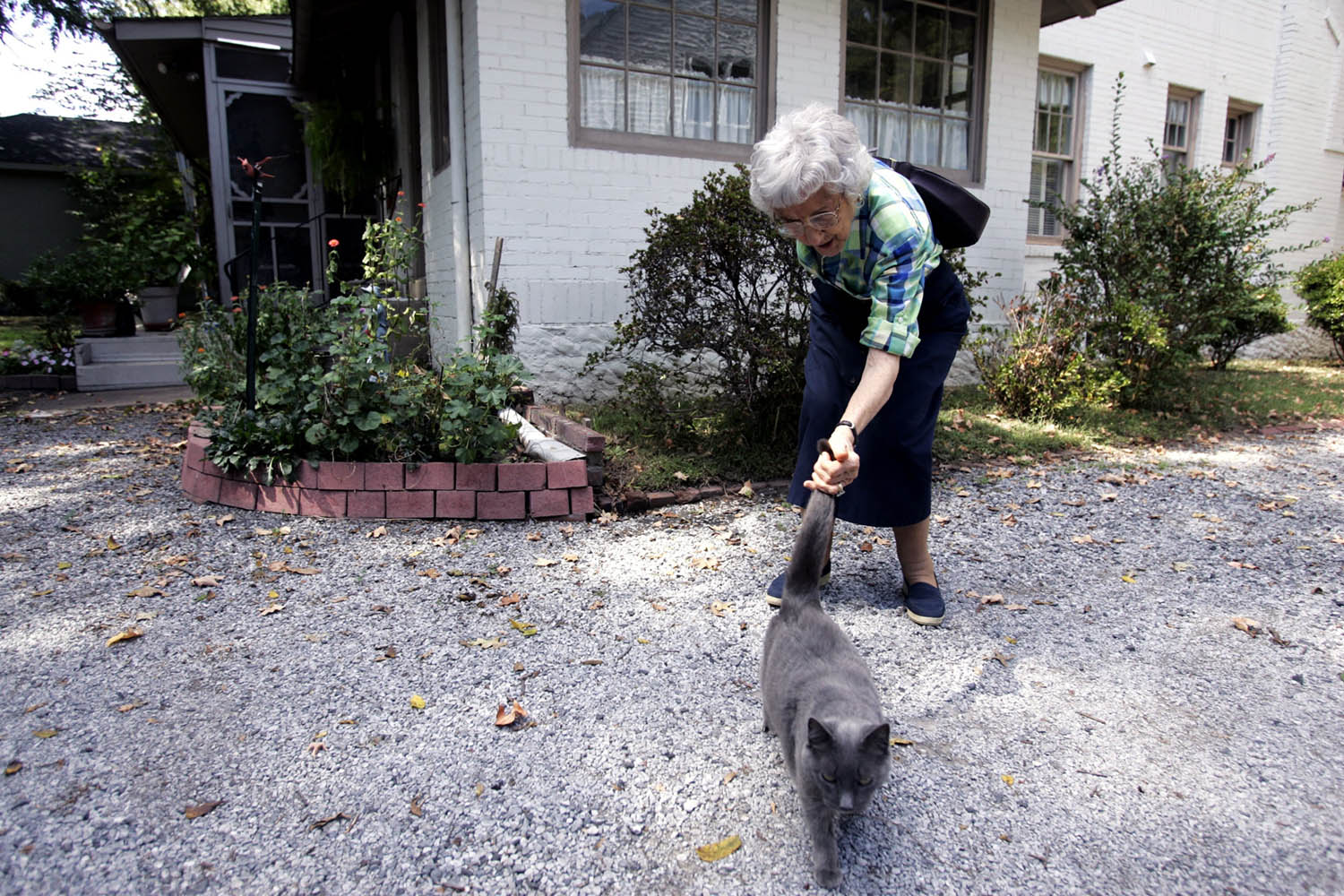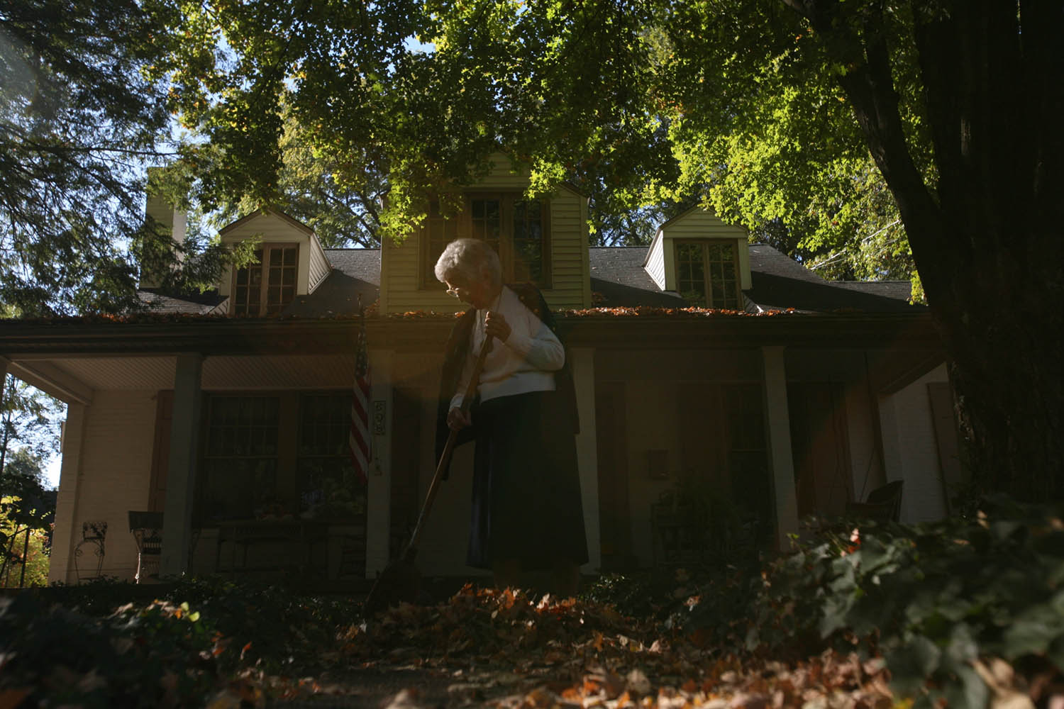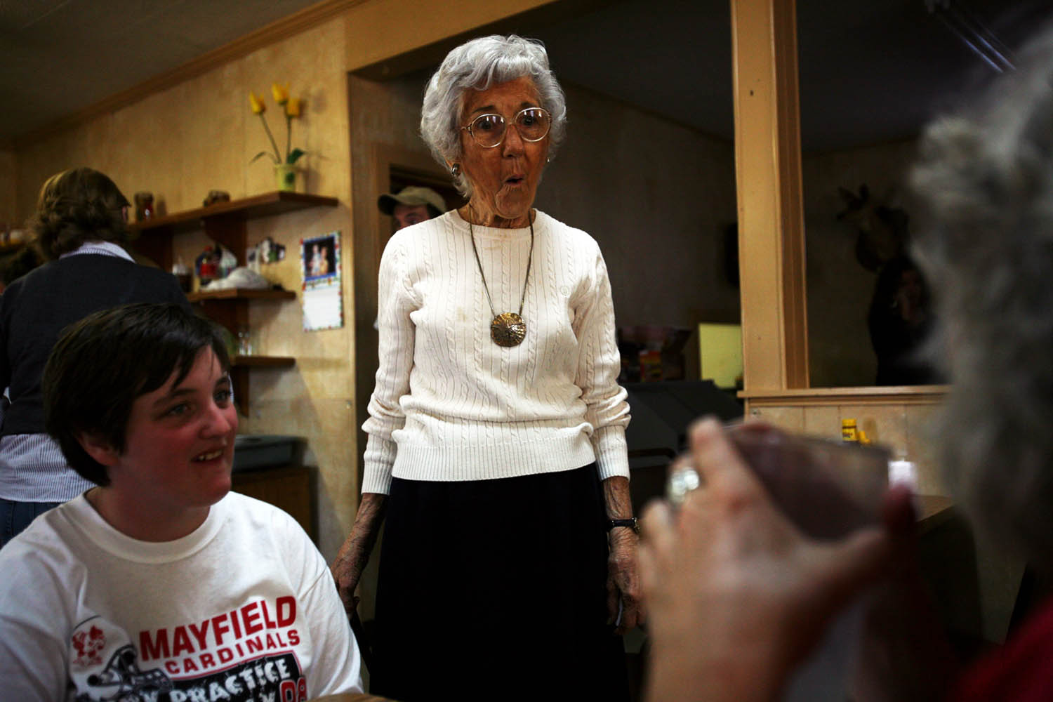 Virginia Garrott uses a golf club to roll walnuts to the trunk of the tree in her backyard. Virginia Garrott reads the morning paper over breakfast with her husband, Dan, in their Mayfield home.Virginia Garrott looks through newspaper columns she wrote for the Mayfield Messenger several decades ago. Virginia Garrott hugs her daughter-in-law Joyce Garrott, who came to visit with her husband from Cadiz. Virginia Garrott sweeps leaves in front of her house. Virginia Garrott says her life is filled with community evolvement and friendships. "There is always something to do in the town of Mayfield, if you want to do it," she said.Unfortunately there is no info with this photo.Virginia Garrott gets her hair done by hairdresser Carolyn Copeland at Sidney's Styling Salon in Mayfield.Unfortunately there is no info with this photo.Virginia and Dan Garrott read the newspaper in the backyard of their house.