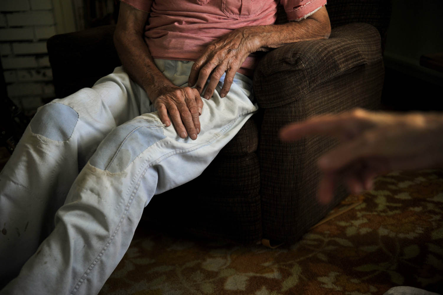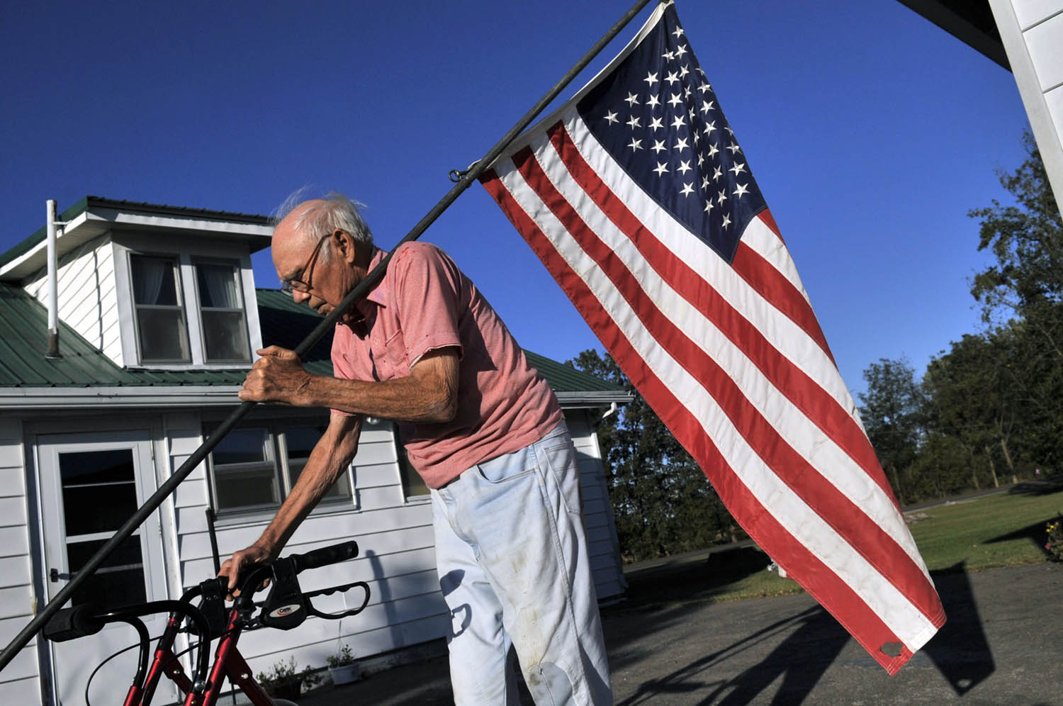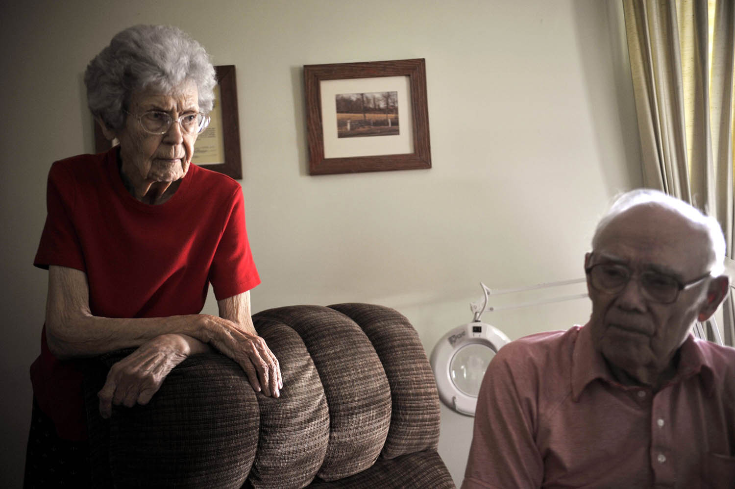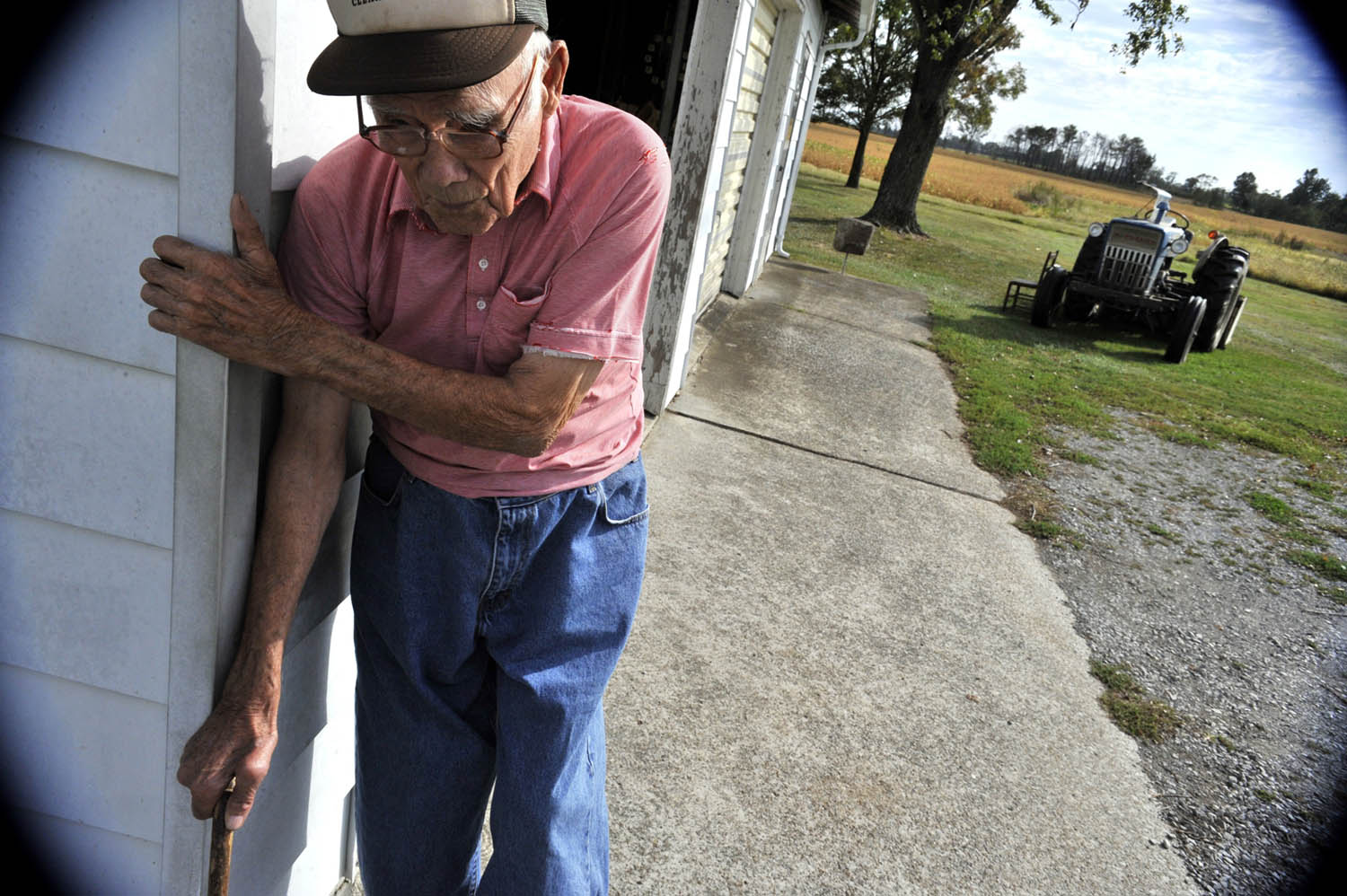 "I think it's a shame to leave the flag out all night or in the rain," said Leon Carter, 96, of Mayfield. He served two years in the U.S. Army, starting in 1944. Picking though a tree of potassium rich banna's Leon Carter, 91, of Mayfeild hands off a banna to his wife May Carter, 91, at the Food Giant in Mayfeil. May and Leon share banannas becuase a hole one is so much to eat for either one. " He can still eat all day, I don't nearly yeat as much i used to." said May. "Oh, she is the sweetest little thing," said Rita Herndon, a worker at Hair Port, about May Carter, 91. Carter, now a retired homemaker, prides herself on the cleanliness of her home and appearance." I wind the clock twice a week and oil it with a dab of oil on a piece straw and i to that every fifteen years of so." said Leon Carter, 96, of Mayfeild. Leon a master craftsman built the grandfather clock. "He has gone thought at least three hearing aids, now he just doesn't use them," said May Carter of Mayfield. Now May, 91, and Leon, 96, just have to be close when they talk. "Most of the time when I see people laugh I just have a laugh along with them, but I can't hear them," Leon said. May and Leon were married in 1935.Leon Carter, 96, braces himself before heading out of his garage/ workshop. "It's hard to keep my balance when I walk," Leon said. He was a master craftsman and farmer when he was younger.Every morning Leon Carter, 91, of Mayfield reads over his well loved bible. Carter and his wife May Carter, 91, read the bible and pray card after breakfast and before they go about doing thier own things. "Can you believe we both have all our own teeth?" said May Carter, 91, of Mayfeild. " I think she is so cute when she wears that hat." said Leon Cater, 96, of Mayfeild. The Carters have been married for 72 years. he Carters pose for a portait in their backyard."If I said we never fought, that would be a lie," said May Carter, 91, of Mayfield about Leon, her husband of 72-years. "She did a fine job on them," Leon Carter, 96, said of his his wife's repair job on the knees of this pants. Leon and May, 91, have been married for 73 years. "I just loved cleaning and working around the house," May said.