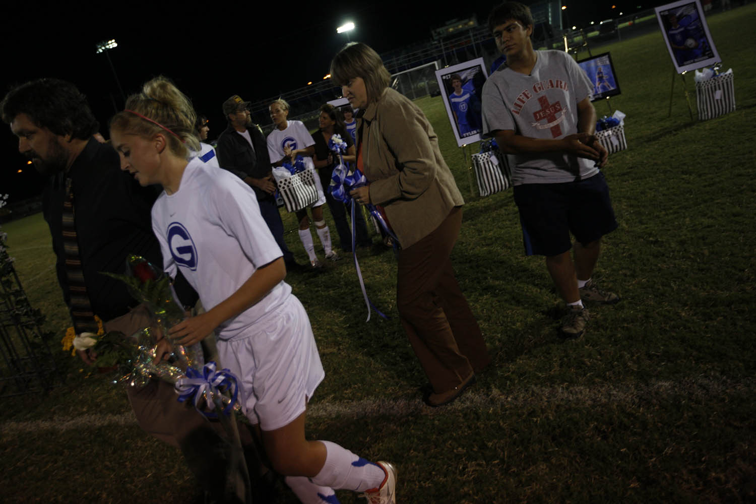 Jordan Dowdy, right, trails behind his family after his sister, Ashlyn, was honored during senior's night after her soccer game.Unfortunately there is no info with this photo.Unfortunately there is no info with this photo.Jordan Dowdy watches as his mother, Lori, center, and sister, Ashlyn, read about Ashlyn's efforts for the Graves County girls soccer team. Jordan and Ashlyn are seniors at Graves County High School. Unfortunately there is no info with this photo.Unfortunately there is no info with this photo.Jordan Dowdy, manager of the Graves County High School girls soccer team, holds a water jug so freshman midfielder Lauren Alexander can quinch her thirst after an afternoon practice. Unfortunately there is no info with this photo.Unfortunately there is no info with this photo.