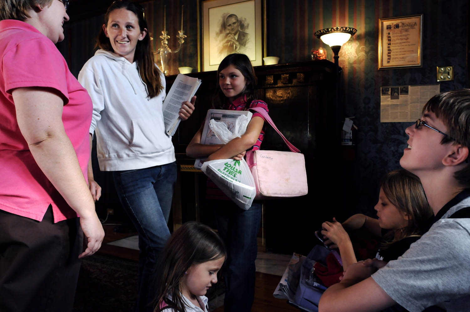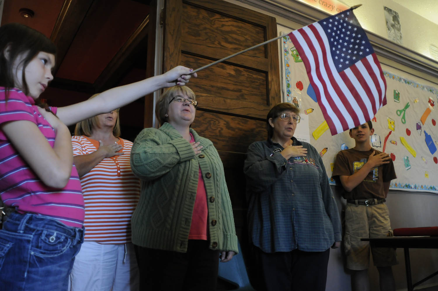 Derek Watkins, left, and his sole classmate, Jevan Pasaol, work on their exercises in the intermediate auditory class at Shedd Academy. With only eight students enrolled at the academy, students have plenty of one-on-one interaction with teachers. (2008 Chris Fryer / The Mountain Workshops)Unfortunately there is no info with this photo.Derek Watkins watches the St. Louis Arch pass as he leaves from a two day field trip to the city with his school, The Shedd Academy for children with dyslexia, attention deficit disorder and/or other learning disablities.Part of the field trip for the Shedd Academy to the St. Louis Science Center included a viewing in the center's planetarium where they learned about the night sky and watched a presentation of Mr Hubble's Universe, a documentary on the Hubble Telescope.need namesDerek Watkins, far right, observes his mother, Ila, far left, speaking with Brittany Weatherford, who picks up her little sisters, Candace, centered, and MaKayla Jenkins, lower right, with her daughter Alexus, bottom center. Weatherford always picks up her younger sisters, but this is the last time because they have decided to start home schooling. This will leave only six students enrolled at Shedd Academy. Derek Watkins shows off a purchase from the the St. Louis Science Center's gift shop to his grandparents, George F. and Joyce Kitchen. Derek just returned from a school field trip to Missouri. (2008 Chris Fryer / The Mountain Workshops)Derek Watkins, left, competes on his new Nintendo Wii with his grandfather, George F. Kitchen, and mother, Ila Watkins, in a bowling match at their home in southern Graves County. Candace Jenkins holds the flag during morning assembly at the Shedd Academy while, from left, Belinda Jenkins, Ila Wakins, Nancy DeJournett and Tyler Harrison recite the pledge of allegiance.