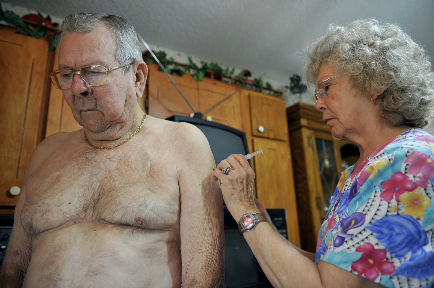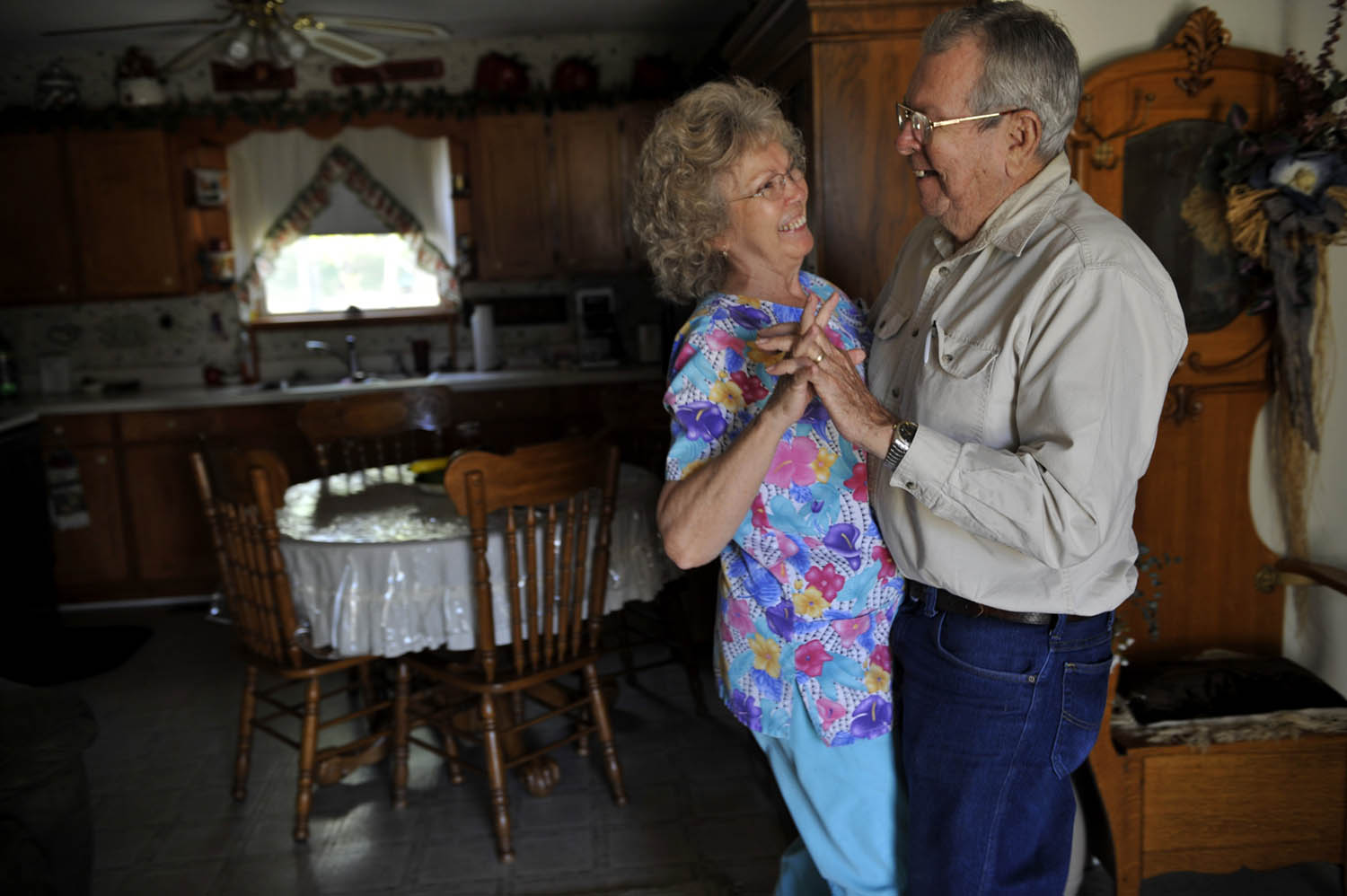 Sam and Shirley Perry have known each other forever. They've been married for 14 yearslong enough to beome smooth dance partners. Both lost first spouses after many years of marriage. When Shirley decided to start dating again she saw Sam in the Wal-mart parking lot. She invited him to church, and things "just went on from there," Shirley said.(2008 Armando Sanchez / The Mountain Workshops)(2008 Armando Sanchez / The Mountain Workshops) (2008 Armando Sanchez / The Mountain Workshops)Sam built his himself. He was taught carpentry while he served in the army and contiued the trade after his discharge. Sam and Shirley both keep photos of their former spouses in the house. When Sam and Shirley Perry started dating, church was one of the first places they went. Now, after 14 years of marriage, the couple attends the Pentecostal Tabernacle together. After she gets home from work Shirley plays fetch with their dog Champion. " I wanted him to get a dog so he wouldn't be so lonely while I was at work."Shirely gives Sam a B12 shot after she gets home from work. Sam was recently told by his doctor to take a B12 shot on the first of every month.(2008 Armando Sanchez / The Mountain Workshops)Shirley washes the dishes while Sam dries after dinner Friday night.Patrica Yokley, a nurse at Morgan Hall clinc is blessed by James Chambers at a Peticastle Tabenacal church service. (2008 Armando Sanchez / The Mountain Workshops)Heriberto Becerra of Nayarit Mexico spikes tobacco early Wednesday morning. Heriberto moved up from Nayarit 8 years ago to work on a tobacco farm. (2008 Armando Sanchez / The Mountain Workshops)