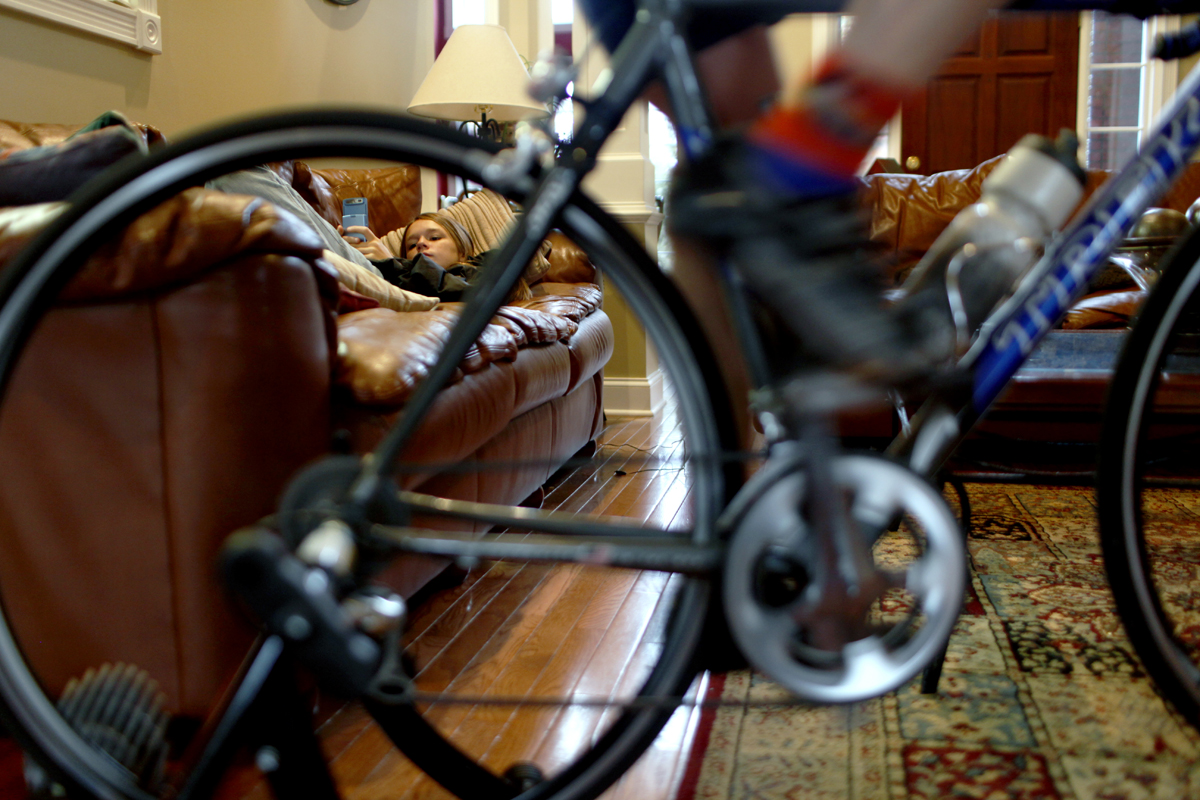During the cycling season, Gary trains to race mountain bikes.