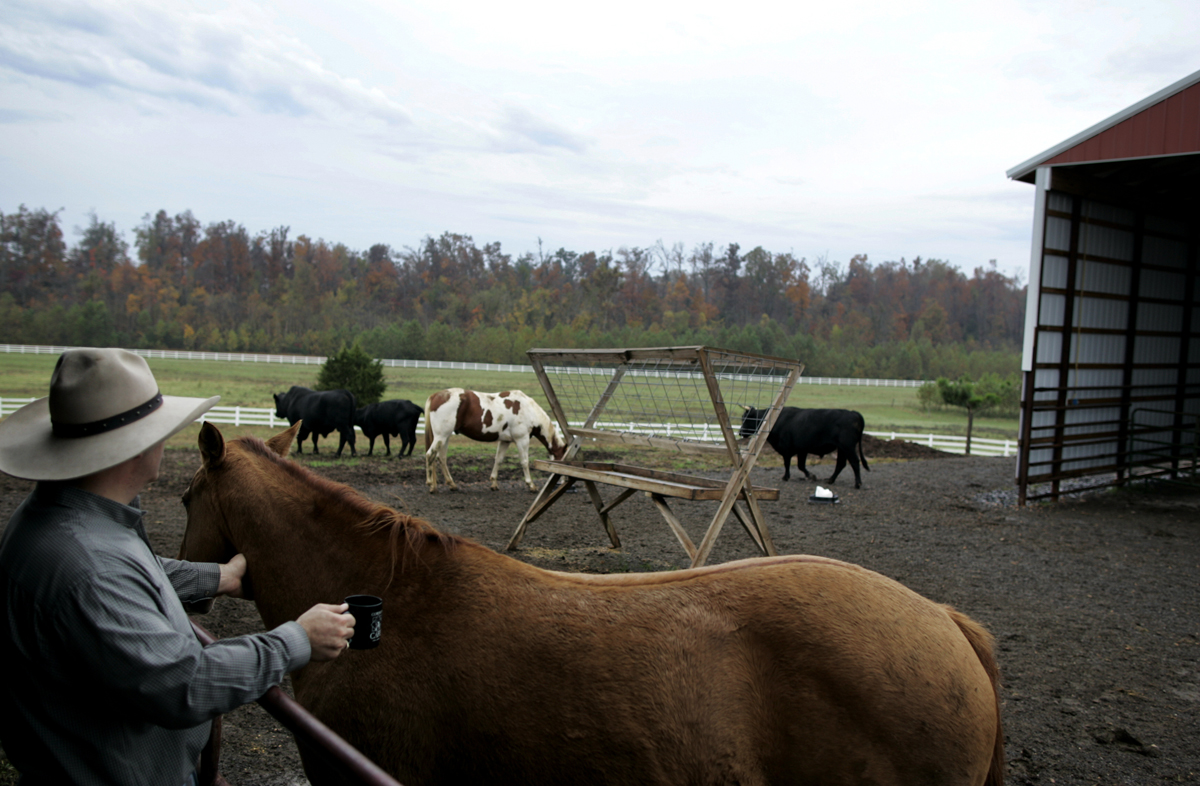 Horses, cows, bulls, dogs and cats join the farm home where Dr. Michael Adams and his family live.