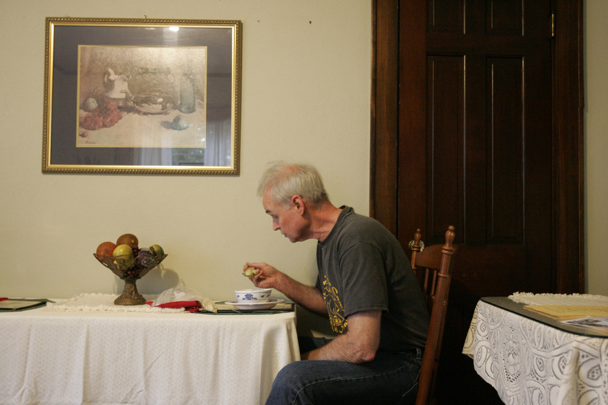 The couple lives above the restaurant, which was converted from a 1928 colonial home. A small sign marked “Private” provides the only evidence that one of the rooms near the upstairs dining area is actually a bedroom.