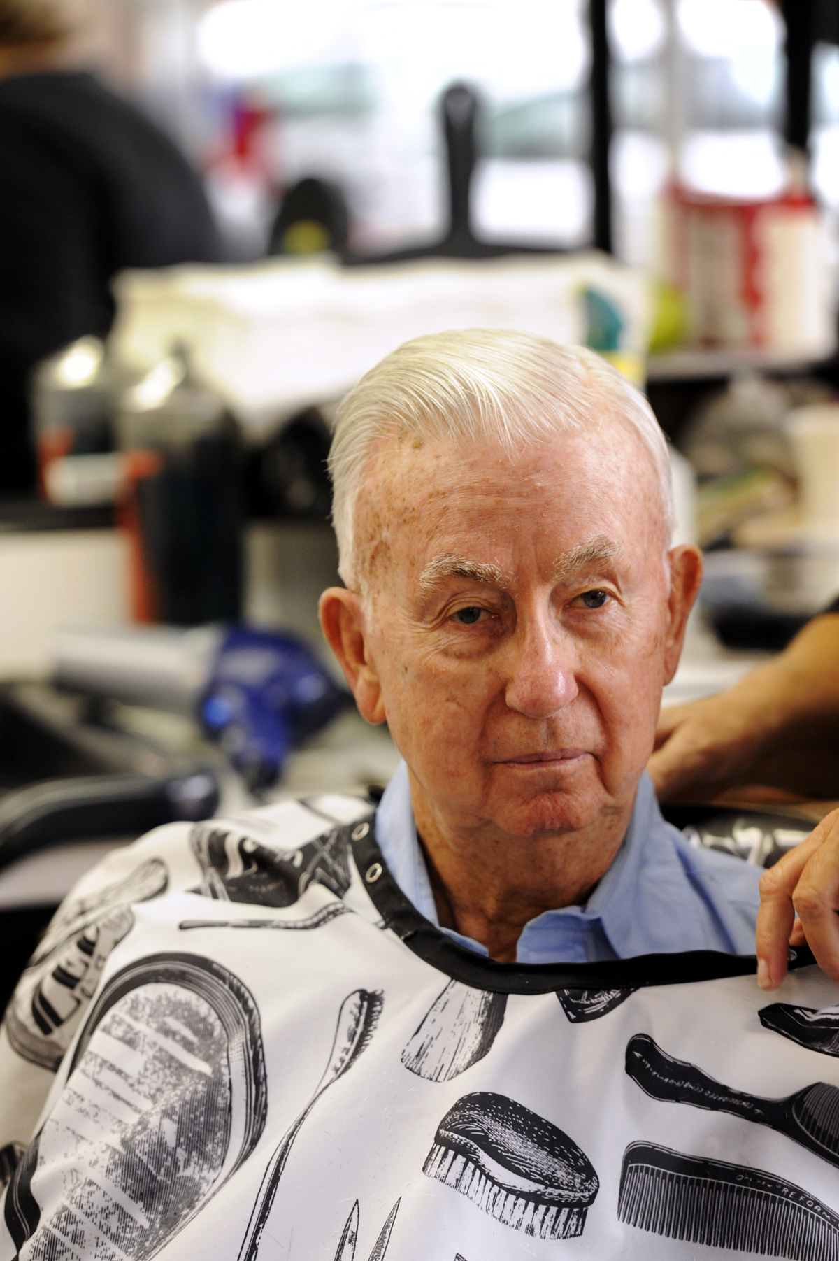 She generated a conversation between a blind man, Howard Bazzell, 92, and another patron, Charles Homra, 78, waiting for his haircut.