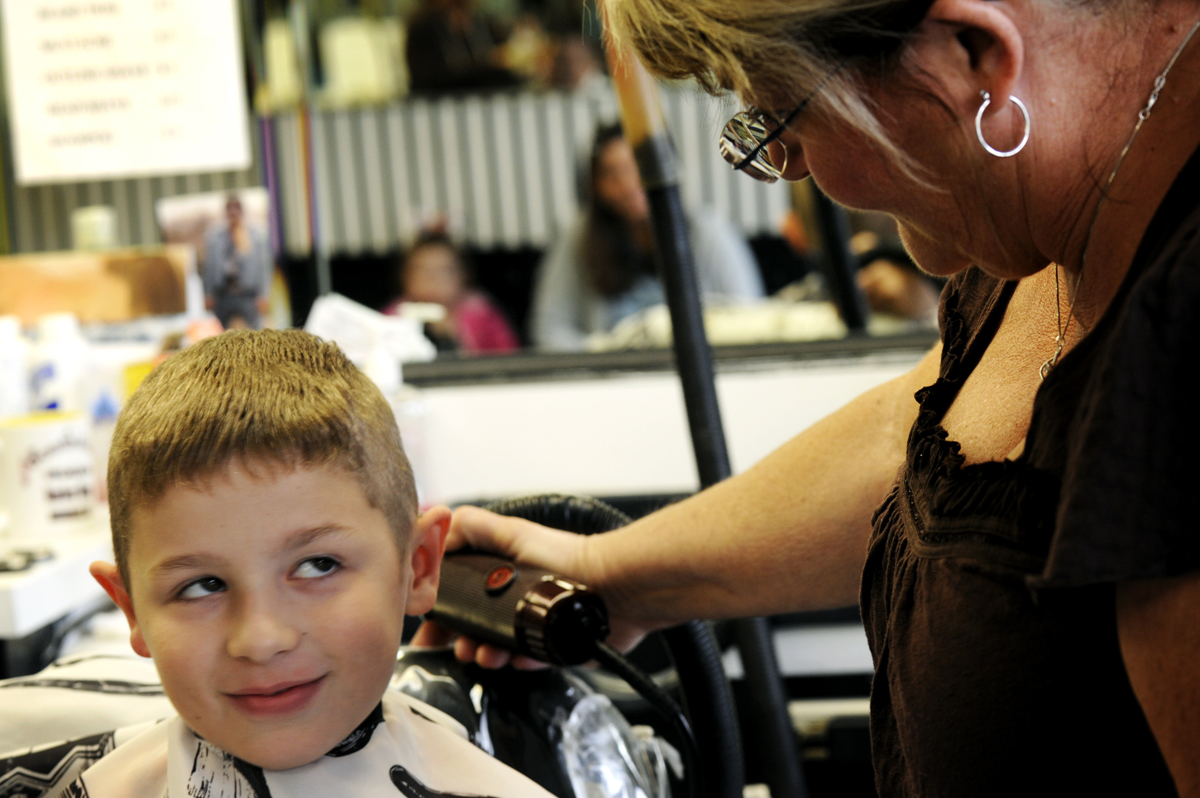 She doesn’t remember the name of every customer, but with few exceptions, she “knows them.” And she knows which barber cuts their hair. Everyone gets some variation of a clipper cut: a buzz, a flattop or a yet-named style requiring all the tools of the trade. Many patrons know the clipper blade size used on them, and barbers give new customers the number for use on future cuts.