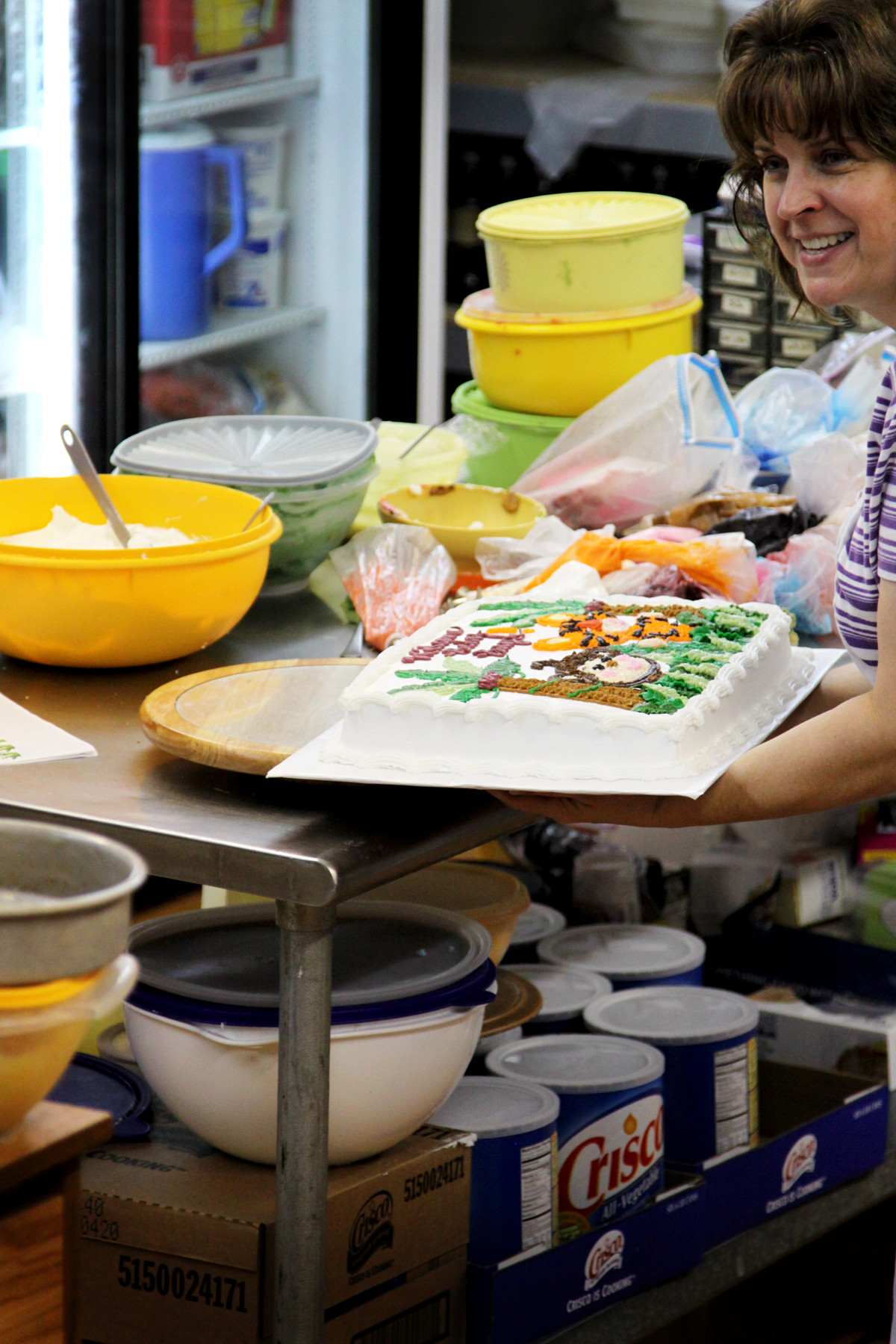 For Marla, The Cake Lady, it starts at sunrise at the Kroger store. Marla buys 48 pounds of confectioners powdered sugar, 30 dozen eggs, 10 dozen boxes of cake mix, five gallons of milk, 20 pounds of butter, 20 pounds of cream cheese and more.