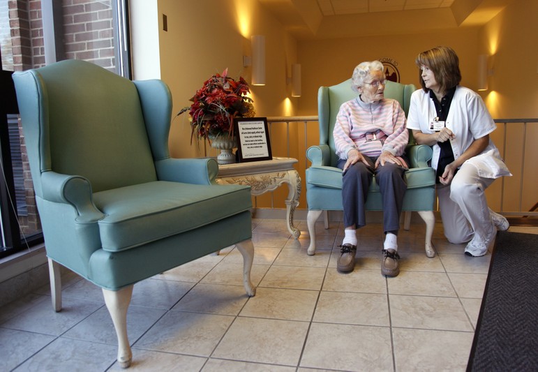 Gertrude’s daughter Regina Grubbs, who lives in Lexington, came to town to help her pack up her belongings in preparation for the move. The two even returned to the family home to pick up a few practical odds and ends — a nightgown, a bathmat, extra blankets — to make the 90-year-old former school cook and dietitian more comfortable at Allegro.