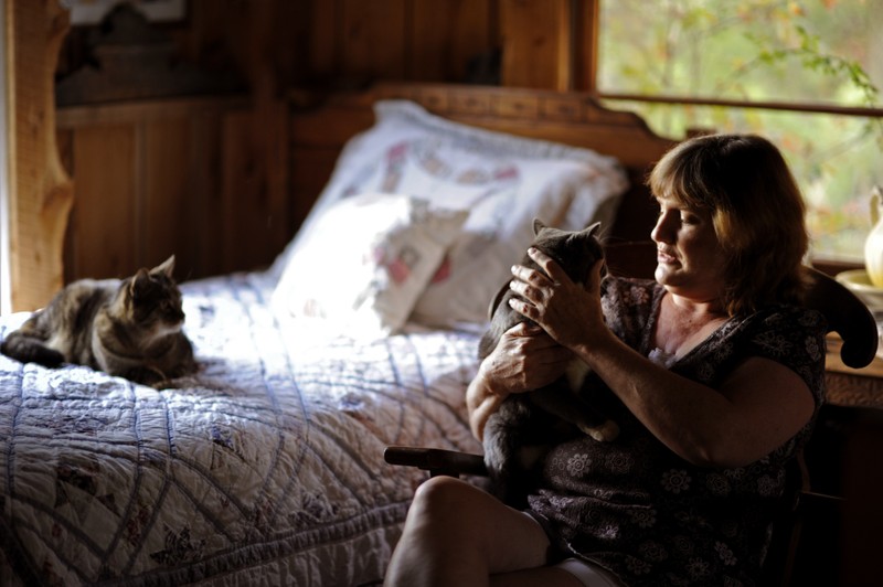 The golden, late-afternoon sun painted a warm glow over the fallen leaves crunching beneath her therapeutic clogs during one of her walks in October. Behind her, six cats and two dogs trotted along at her ankles.