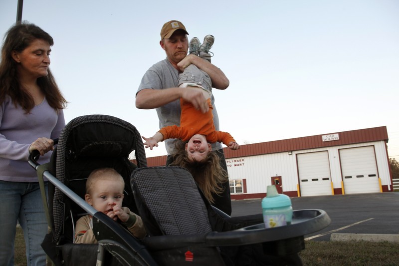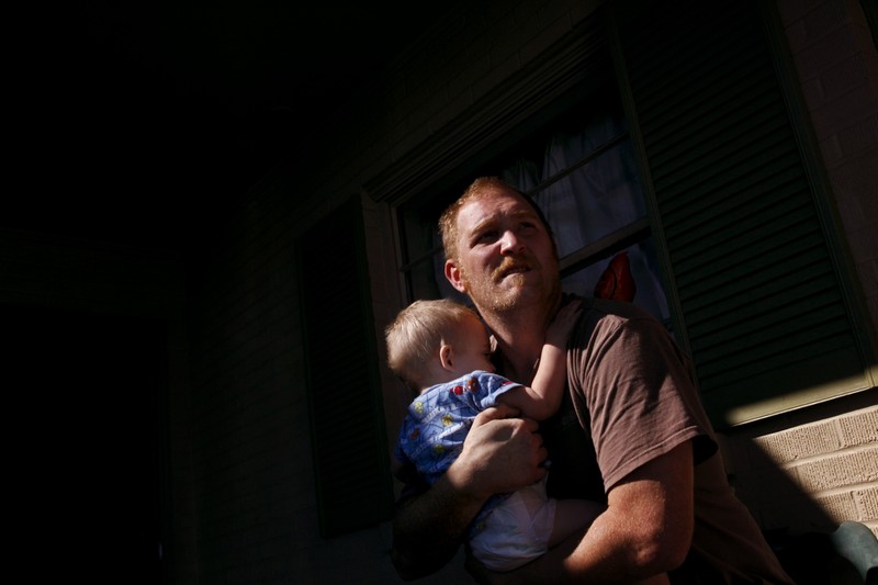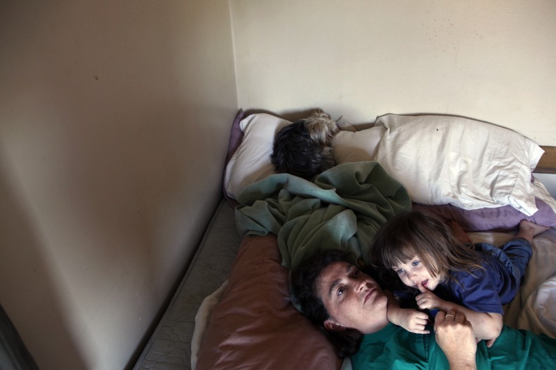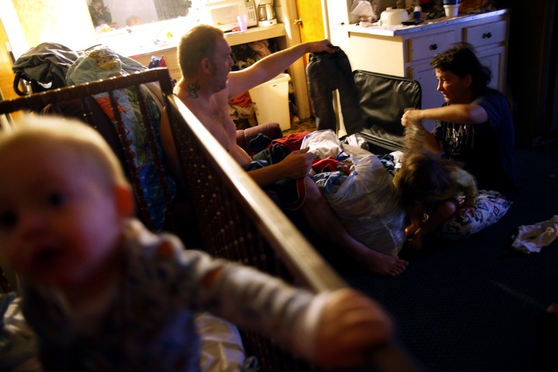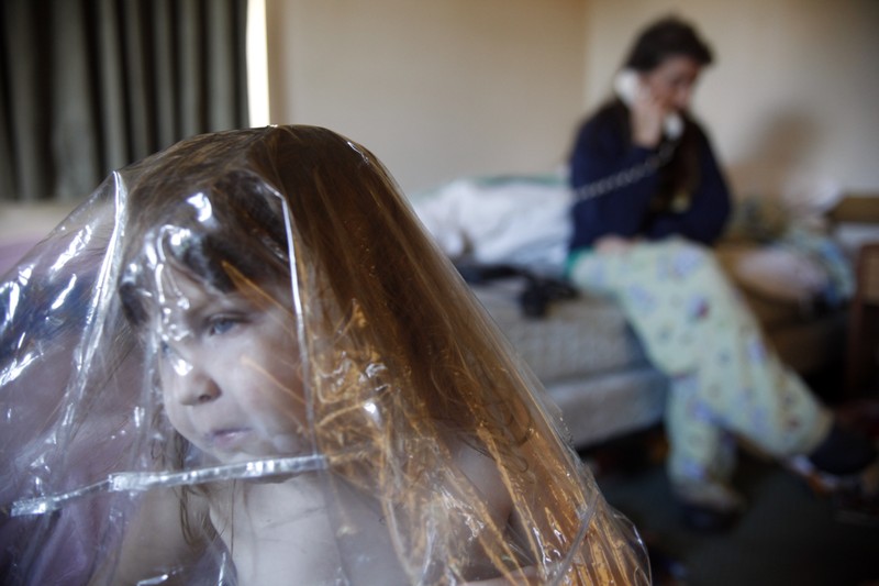 Savanna, sprawled on her parents’ bed, wriggled and spoon-fed peanut butter to her 15-month-old brother, Harlyn. The spoon fell and stuck to the hotel room’s already stained carpet. Tyanna let go.