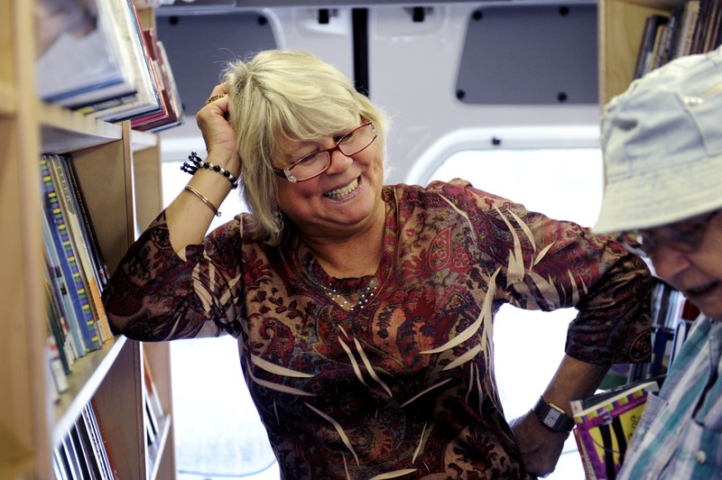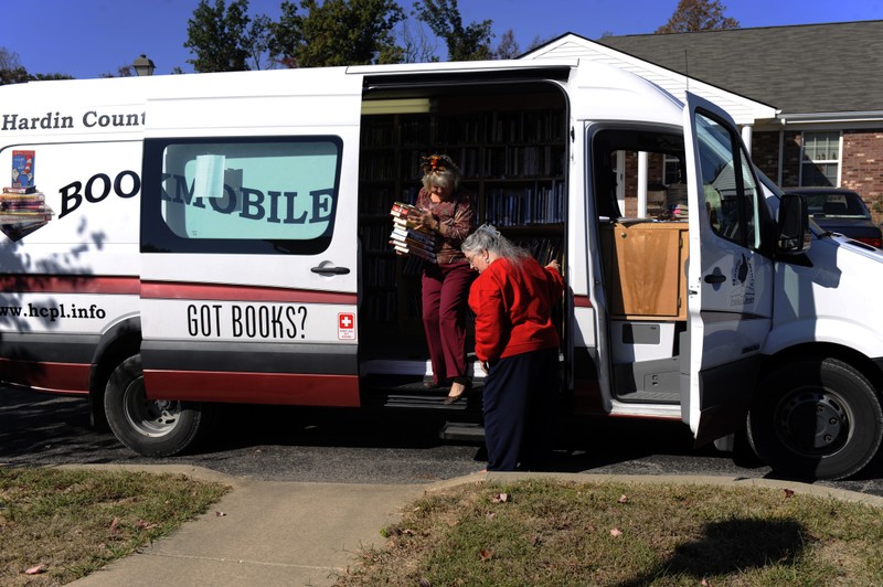 Since 1987, Lisa, 51, has been traveling throughout Hardin County in the bookmobile, a hostess who reads to children at day care centers, visits senior living facilities and chats up locals at community “pit stops” — library card holders of all ages.