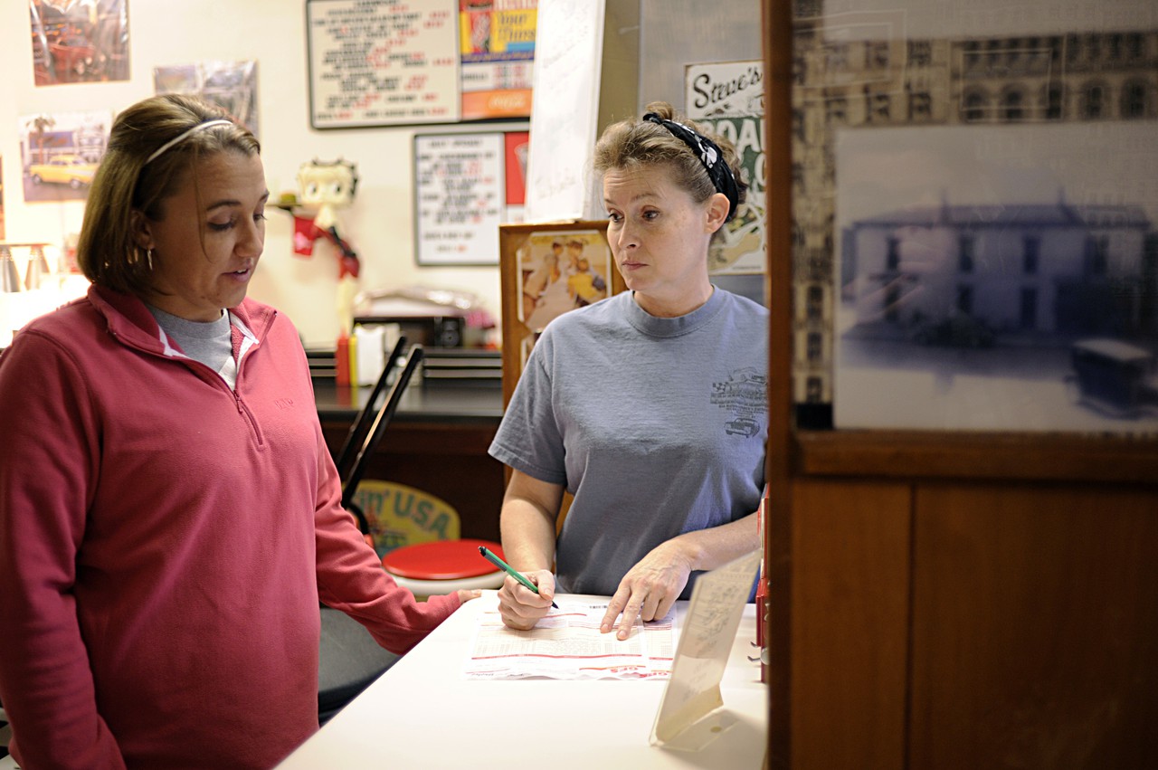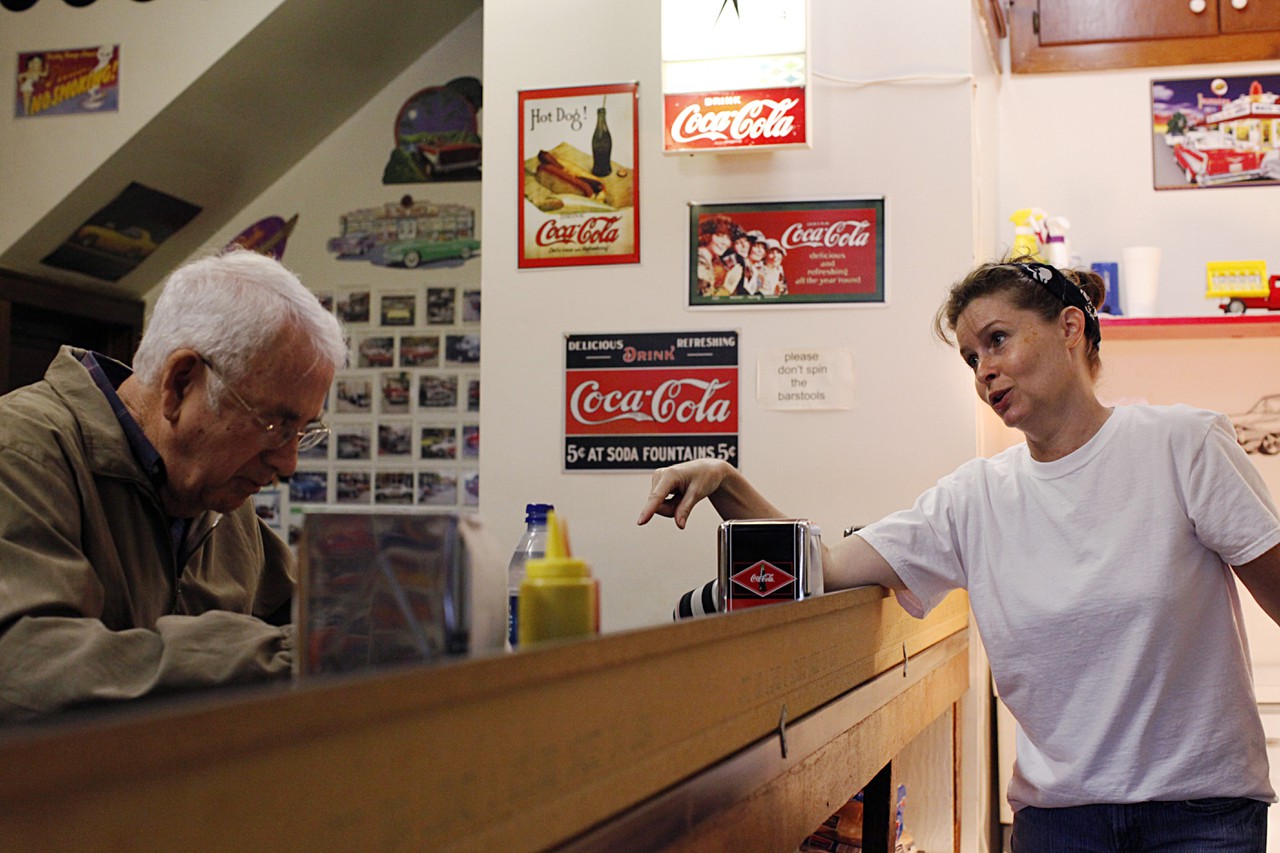The barber, the bankers, and the occasional judge from across the street are among the regulars. Costumers sometimes wait outside for the diner to open at 11 a.m. and will stay at their bar stools until closing time at 2:30 p.m. The diner has extended hours for special occasions, when crowds cram into the tiny diner.