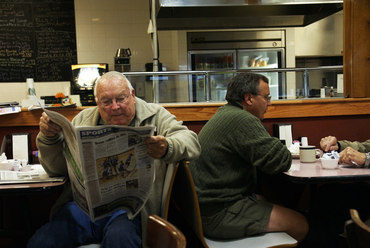 “I come here for the home cooked breakfast and a bunch of our buddies,” Larry says. He’s known O.J. for 20 years. O.J.’s five sons were all members of Larry’s Boy Scout troop.