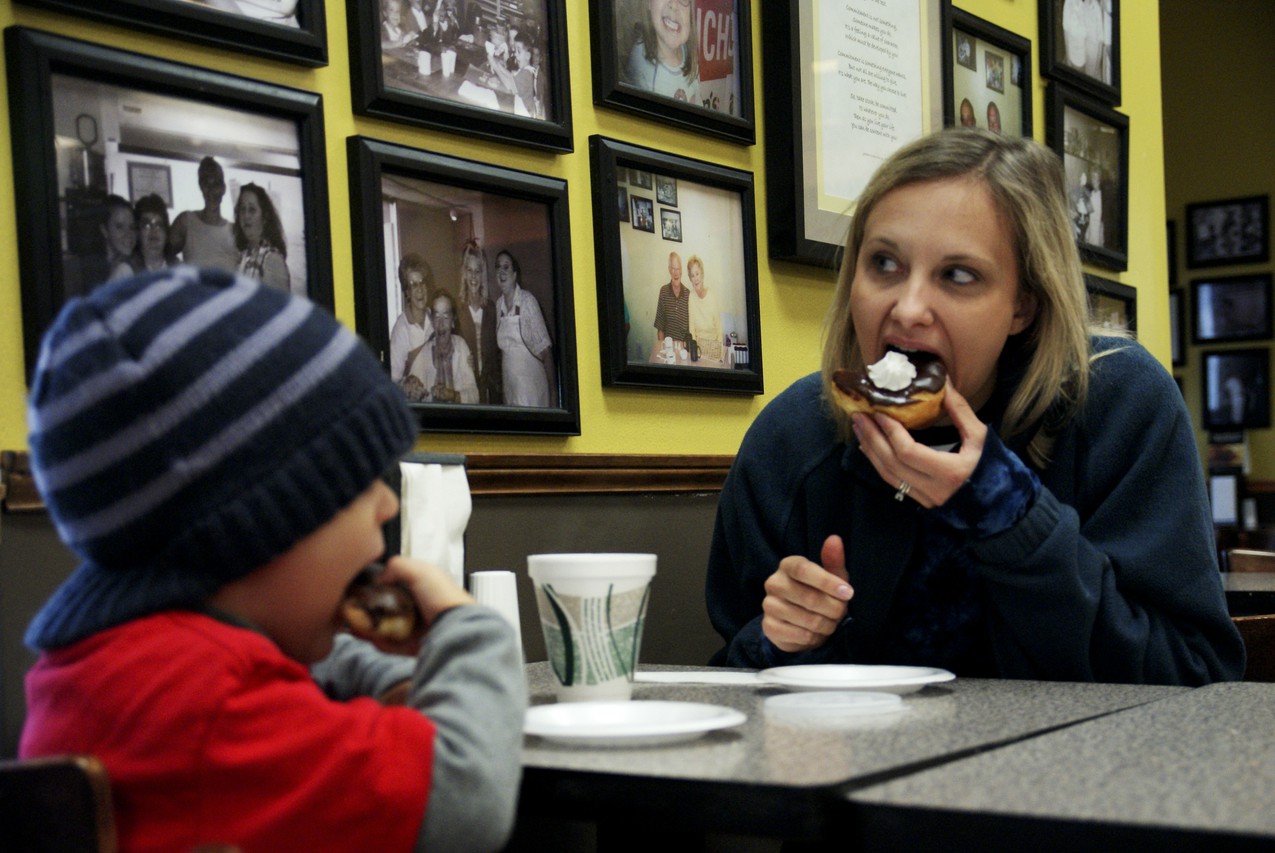The bakery’s early opening hour makes it a perfect place to fuel up before heading to a long day on the job. A group of Kentucky Utilities workers and their friends have made the bakery part of their daily routine. “The people who work here take good care of us,” Anthony Musgrove says. “Good doughnuts, good atmosphere.”