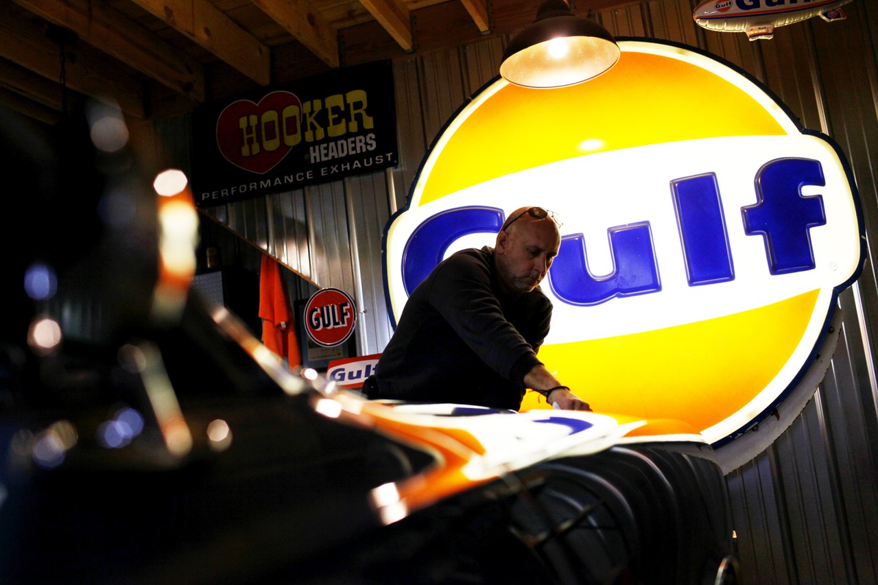 In a small garage lit entirely by an old Gulf sign, Keith Floyd slowly and carefully polishes his 1970 Oldsmobile Cutlass Supreme.